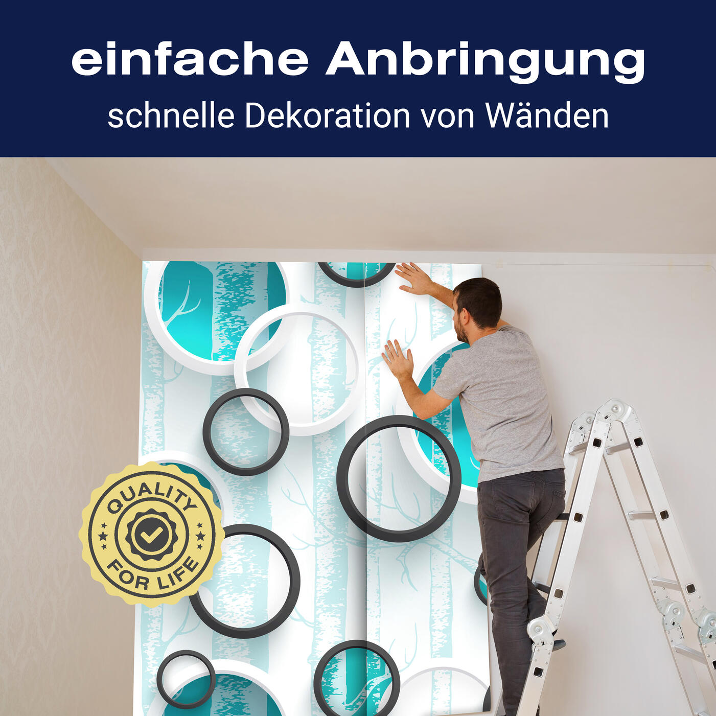 - Wenn deine Fototapete aus mehreren Bahnen besteht, achte darauf, dass die Motive oder das Design sauber und nahtlos ineinander übergehen. Achte dabei auf die Anweisungen des Herstellers oder auf eventuelle Markierungen auf der Tapete selbst.