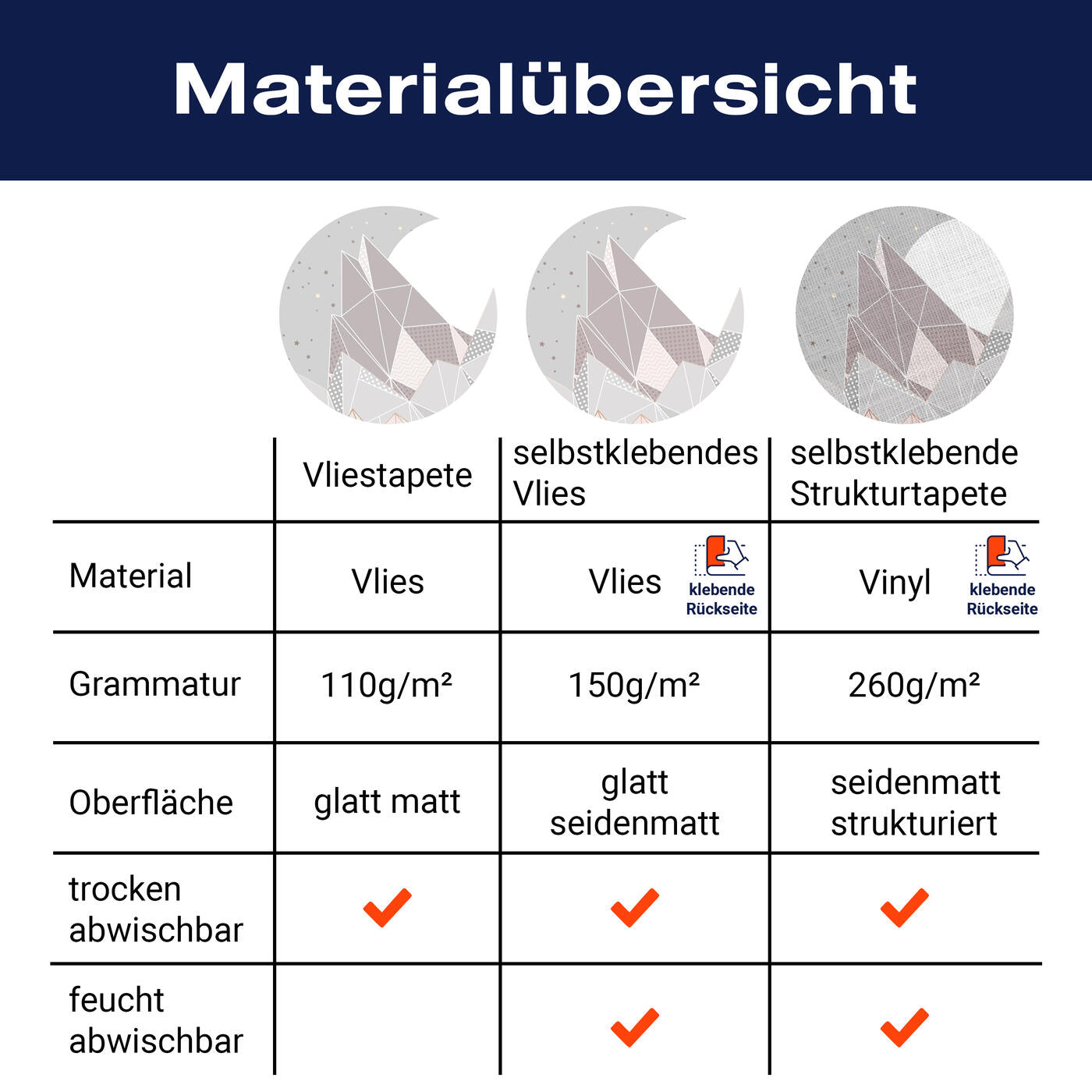 - Selbstklebendes Vlies 150g/m²: Einfach anzubringen, perfekt für Mietwohnungen.