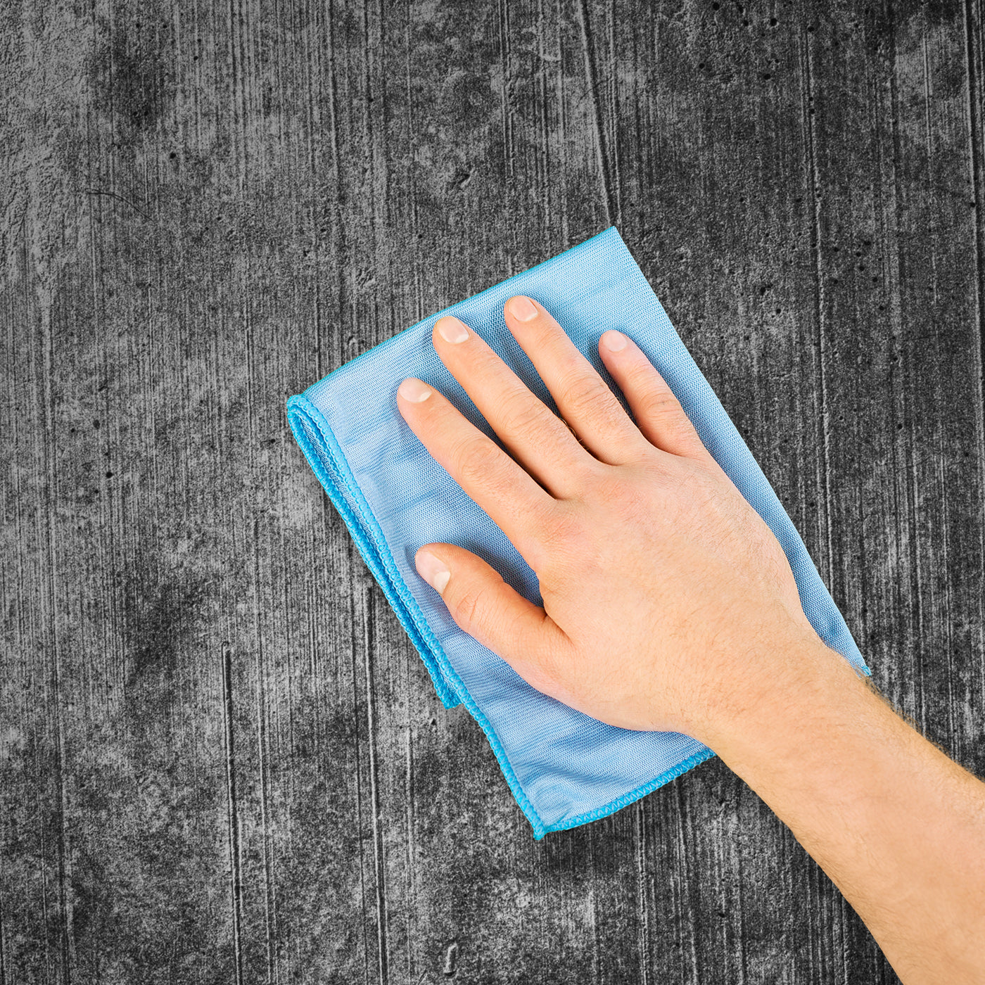- Reinige eventuelle Verschmutzungen oder Kleberreste sofort mit einem feuchten Schwamm oder Tuch.