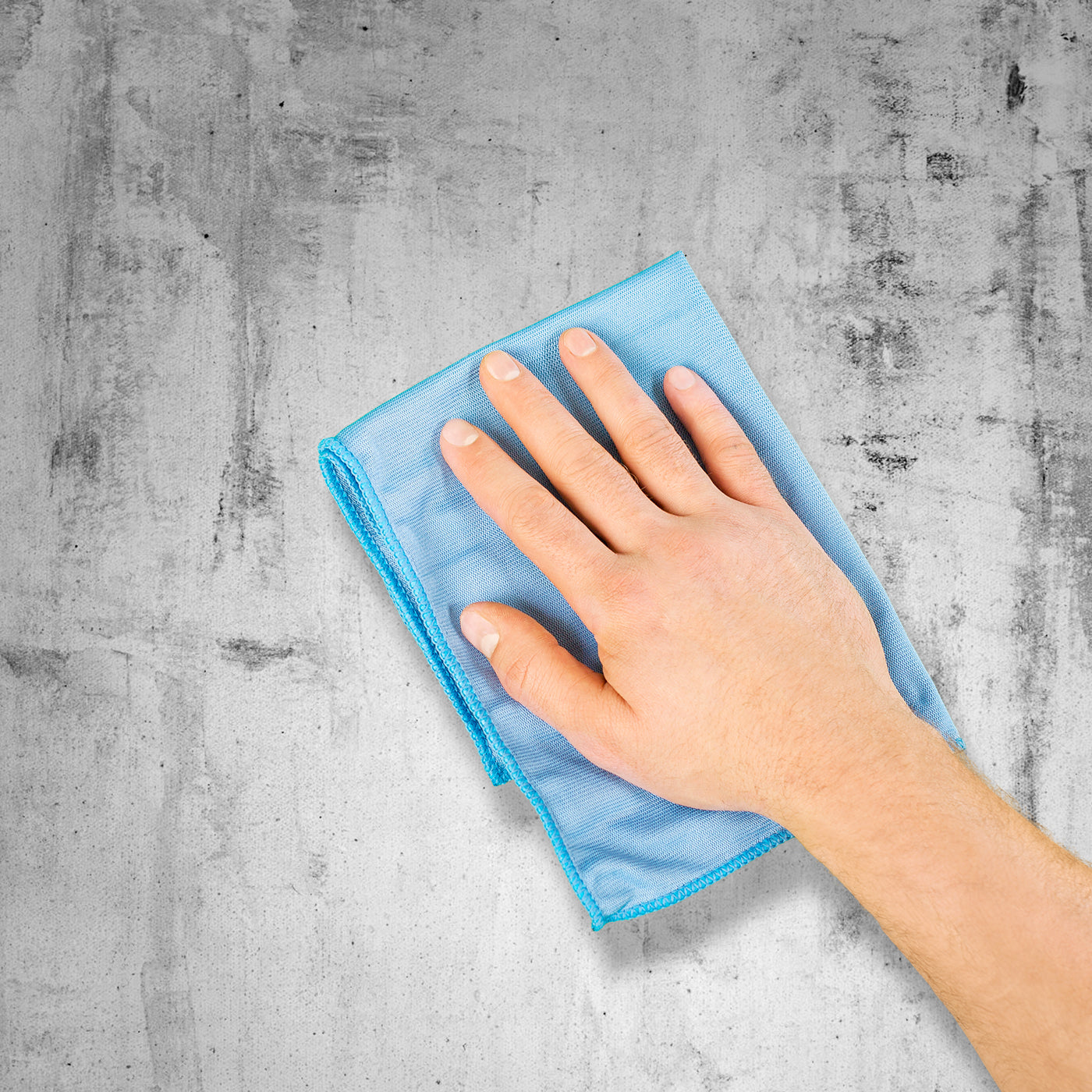 - Reinige eventuelle Verschmutzungen oder Kleberreste sofort mit einem feuchten Schwamm oder Tuch.