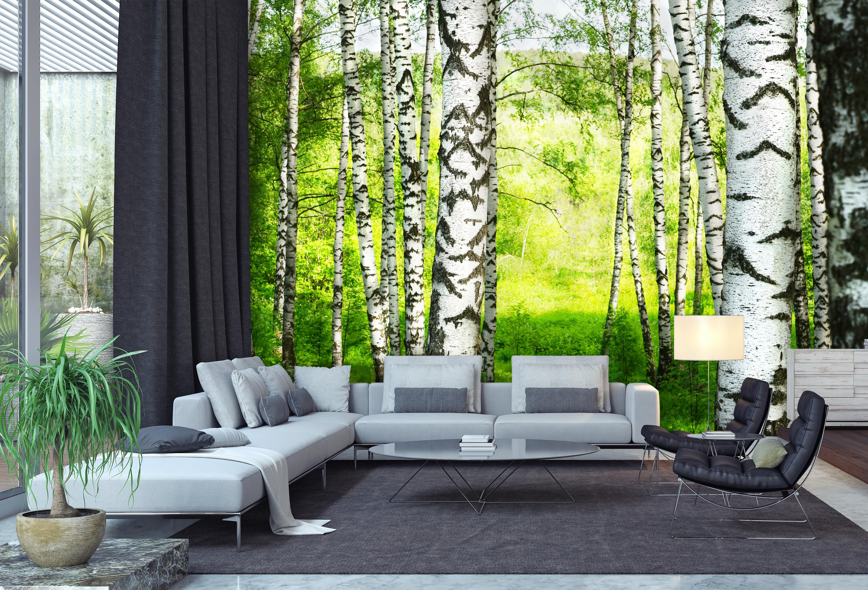 FOTOTAPETE Birkenwald Wiese Landschaft