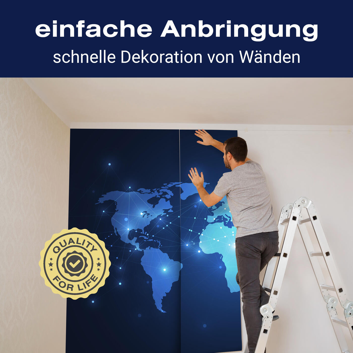 Unsere Fototapeten sind so konzipiert, dass sie ohne großen Aufwand angebracht werden können. Ob selbstklebend oder traditionell, die Anbringung ist einfach und schnell.
