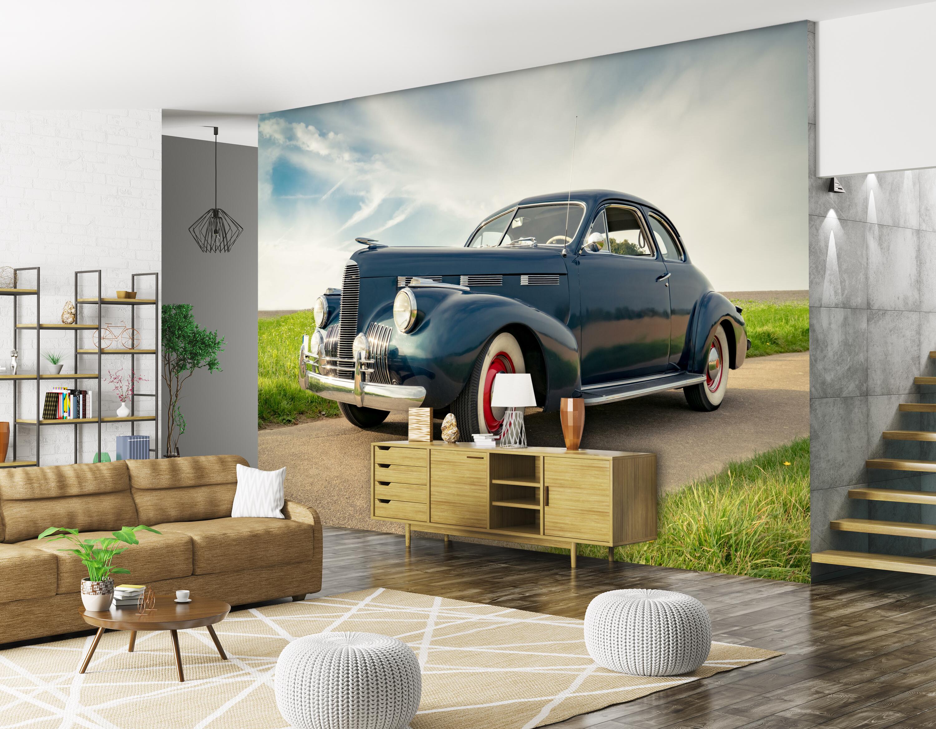 Fototapete Blauer Oldtimer auf Weg M5896