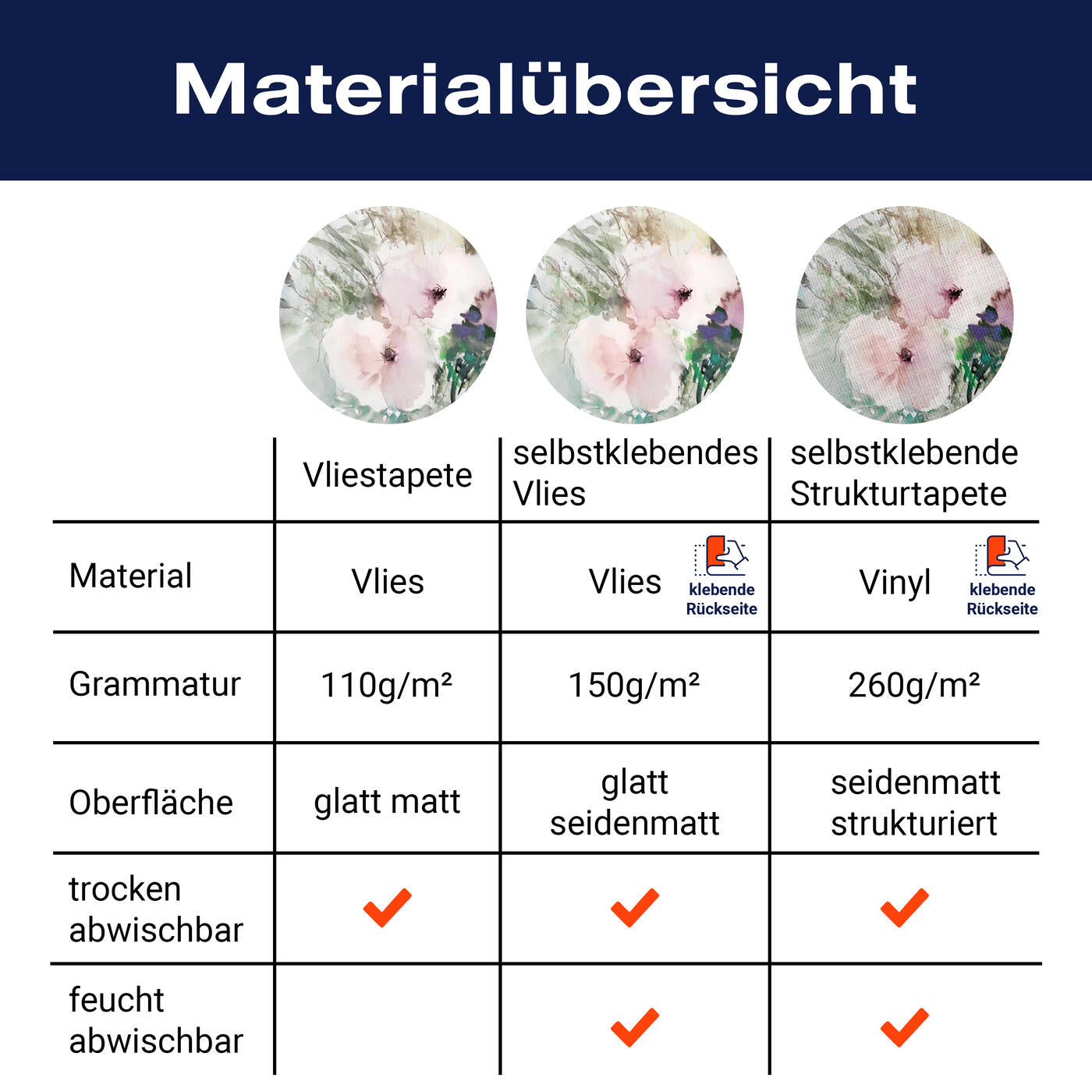 - Selbstklebendes Vlies 150g/m²: Einfach anzubringen, perfekt für Mietwohnungen.