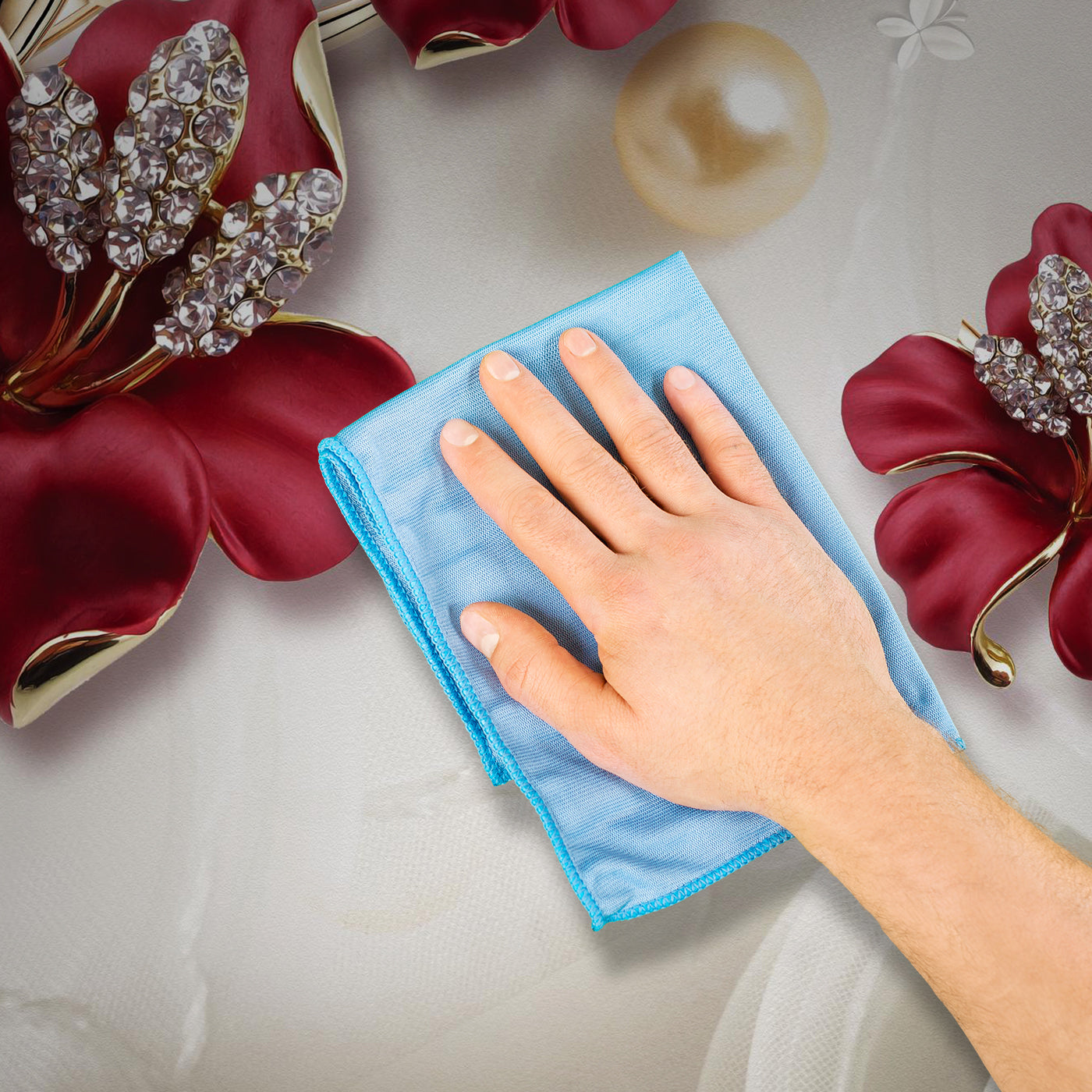 - Reinige eventuelle Verschmutzungen oder Kleberreste sofort mit einem feuchten Schwamm oder Tuch.
