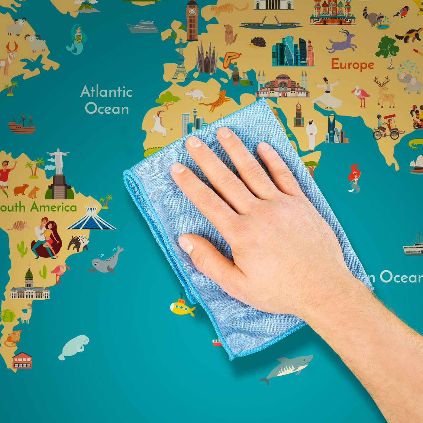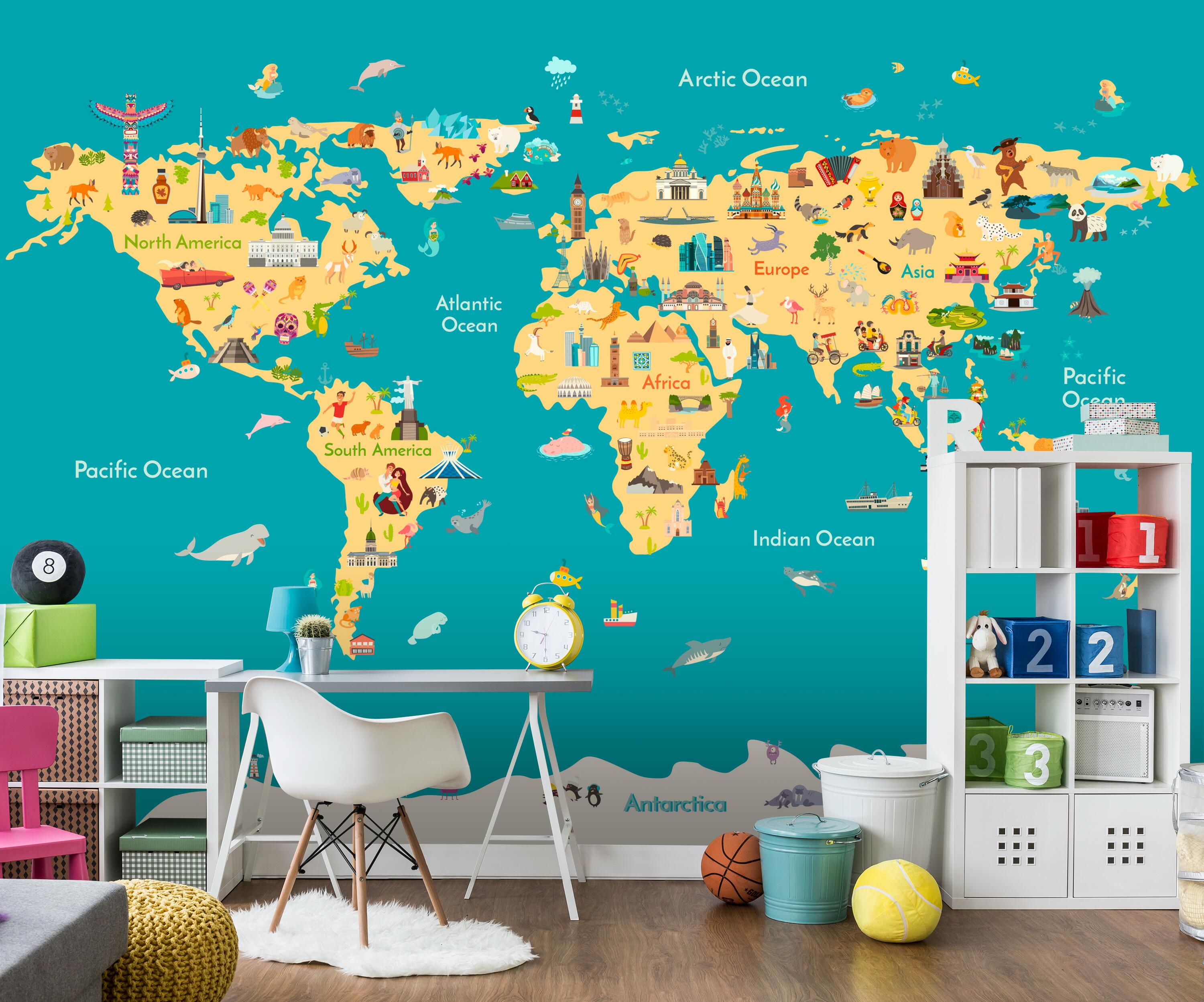 Träumst Du davon, Deine Wände in eine beeindruckende Kunstgalerie zu verwandeln? Mit unserer hochwertigen Fototapete bunte Weltkarte Figuren Kinder M6658 ist es jetzt möglich! Jede Wand wird zu einer Leinwand Deiner Kreativität.