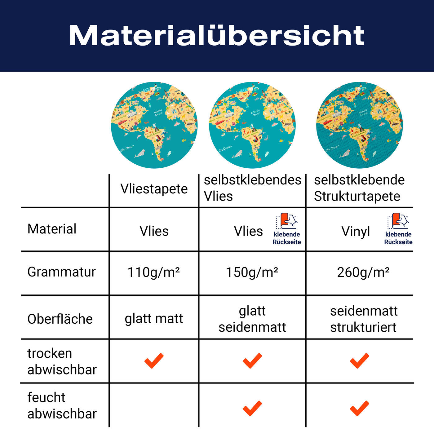 - Selbstklebendes Vlies 150g/m²: Einfach anzubringen, perfekt für Mietwohnungen.