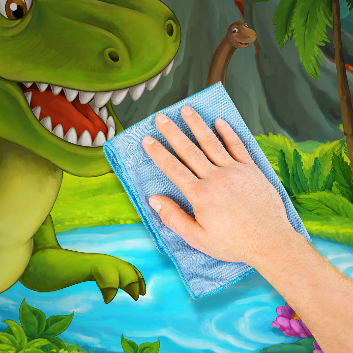 FOTOTAPETE Dino Dinosaurier Berg Teich