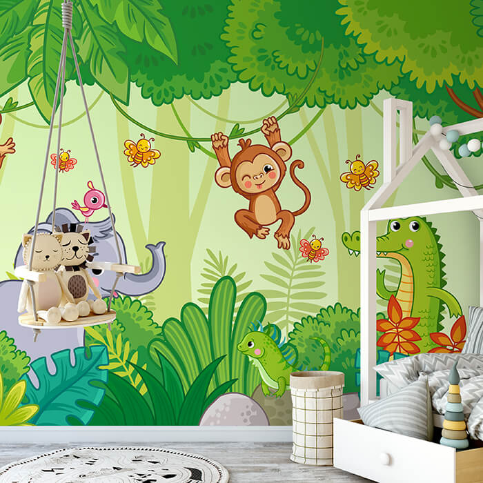 Träumst Du davon, Deine Wände in eine beeindruckende Kunstgalerie zu verwandeln? Mit unserer hochwertigen Fototapete Elefant Affe Krokodil Palme M6877 ist es jetzt möglich! Jede Wand wird zu einer Leinwand Deiner Kreativität.