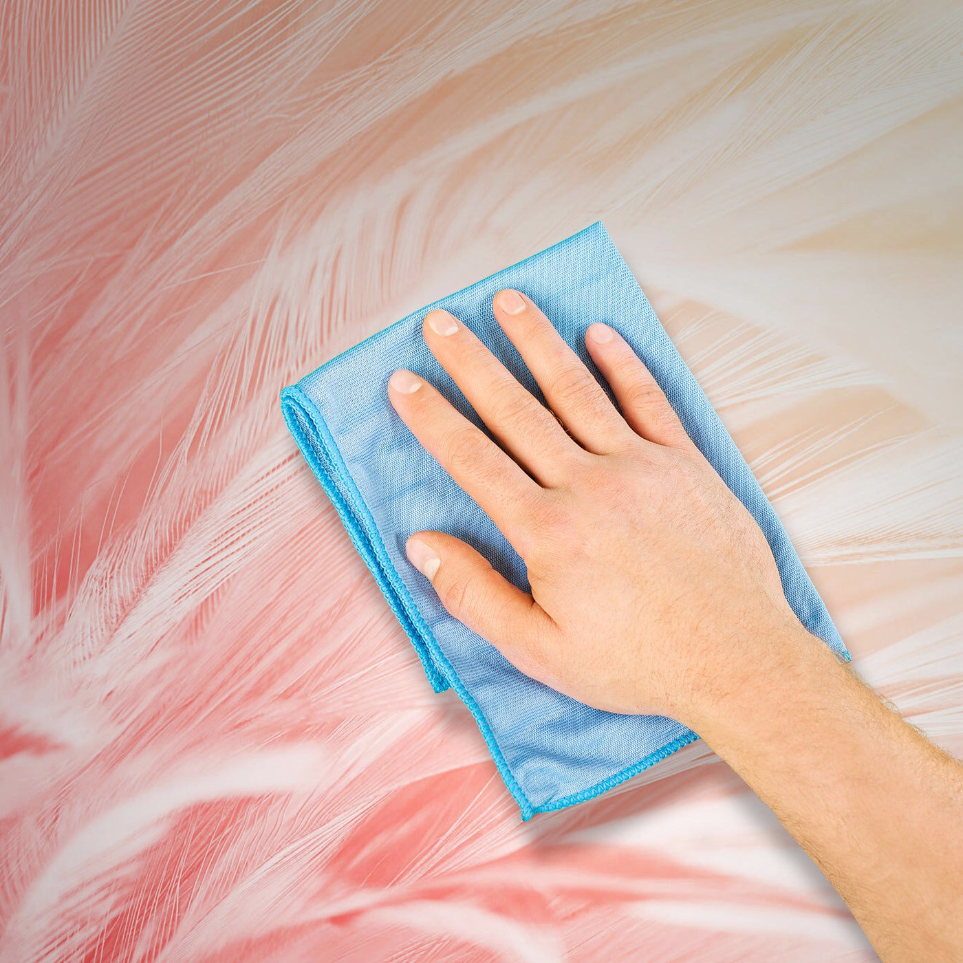 - Reinige eventuelle Verschmutzungen oder Kleberreste sofort mit einem feuchten Schwamm oder Tuch.
