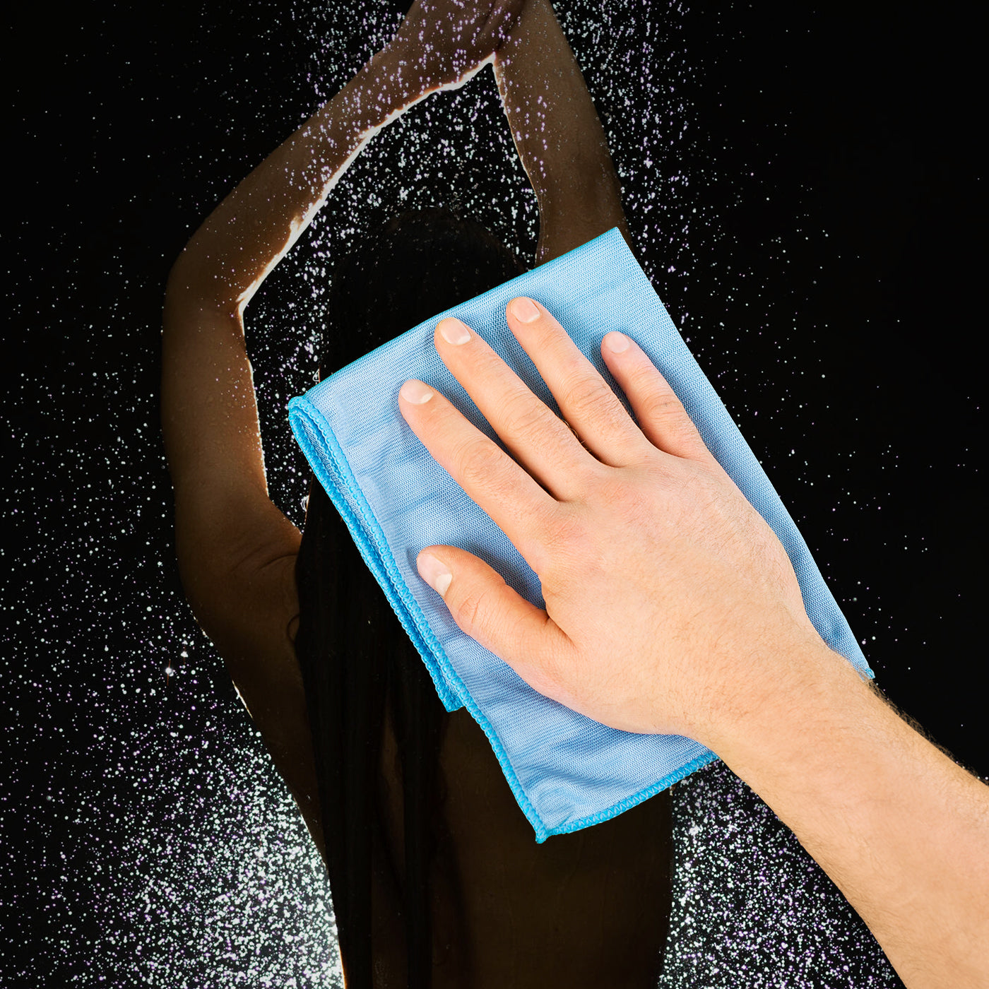 - Reinige eventuelle Kleberreste sofort mit einem feuchten Schwamm oder Tuch.