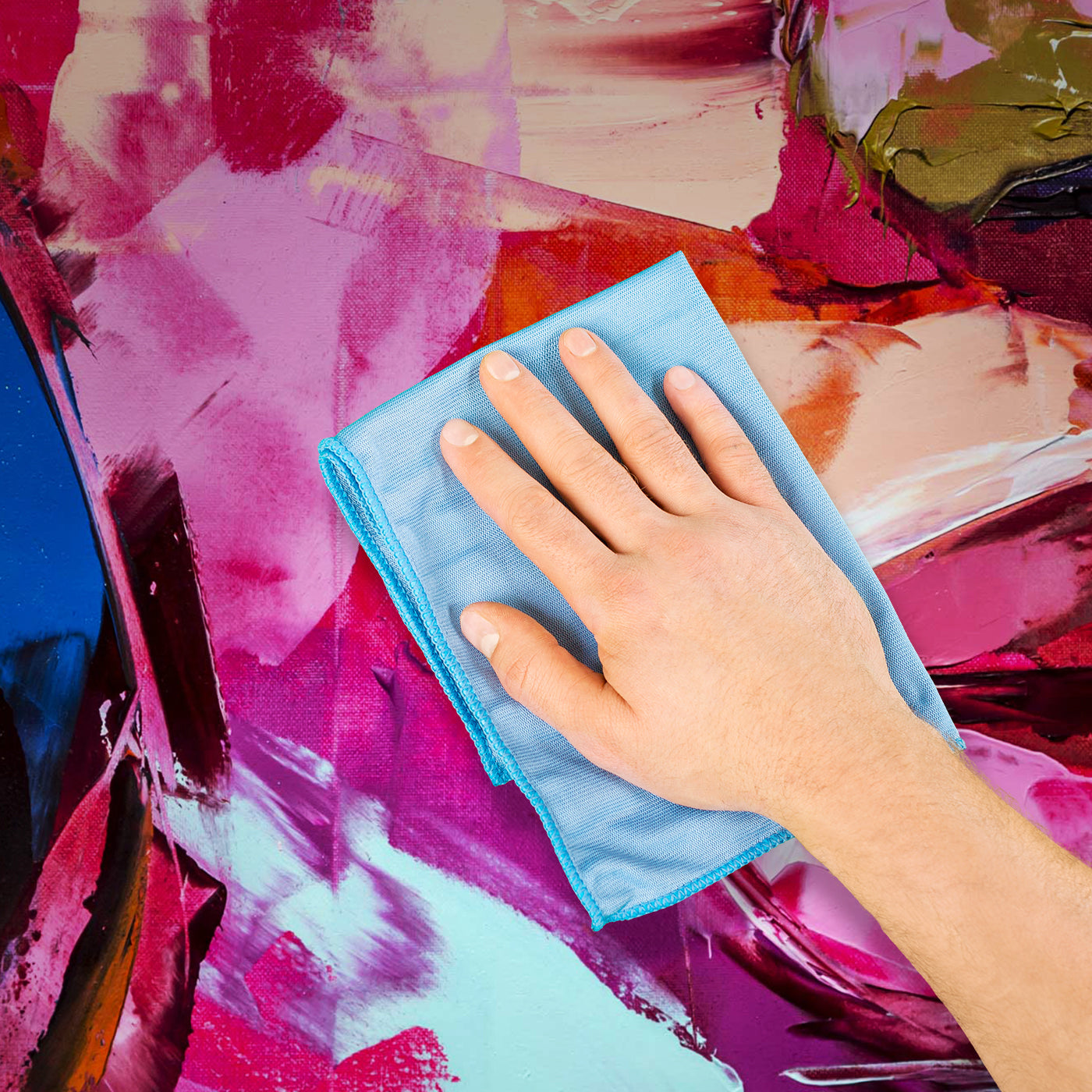 - Reinige eventuelle Verschmutzungen oder Kleberreste sofort mit einem feuchten Schwamm oder Tuch.