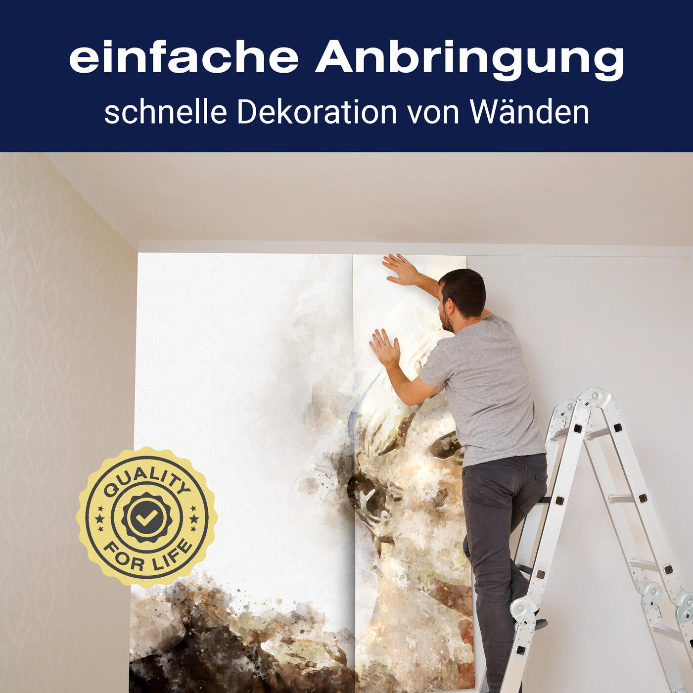 Unsere Fototapeten sind so konzipiert, dass sie ohne großen Aufwand angebracht werden können. Ob selbstklebend oder traditionell, die Anbringung ist einfach und schnell.