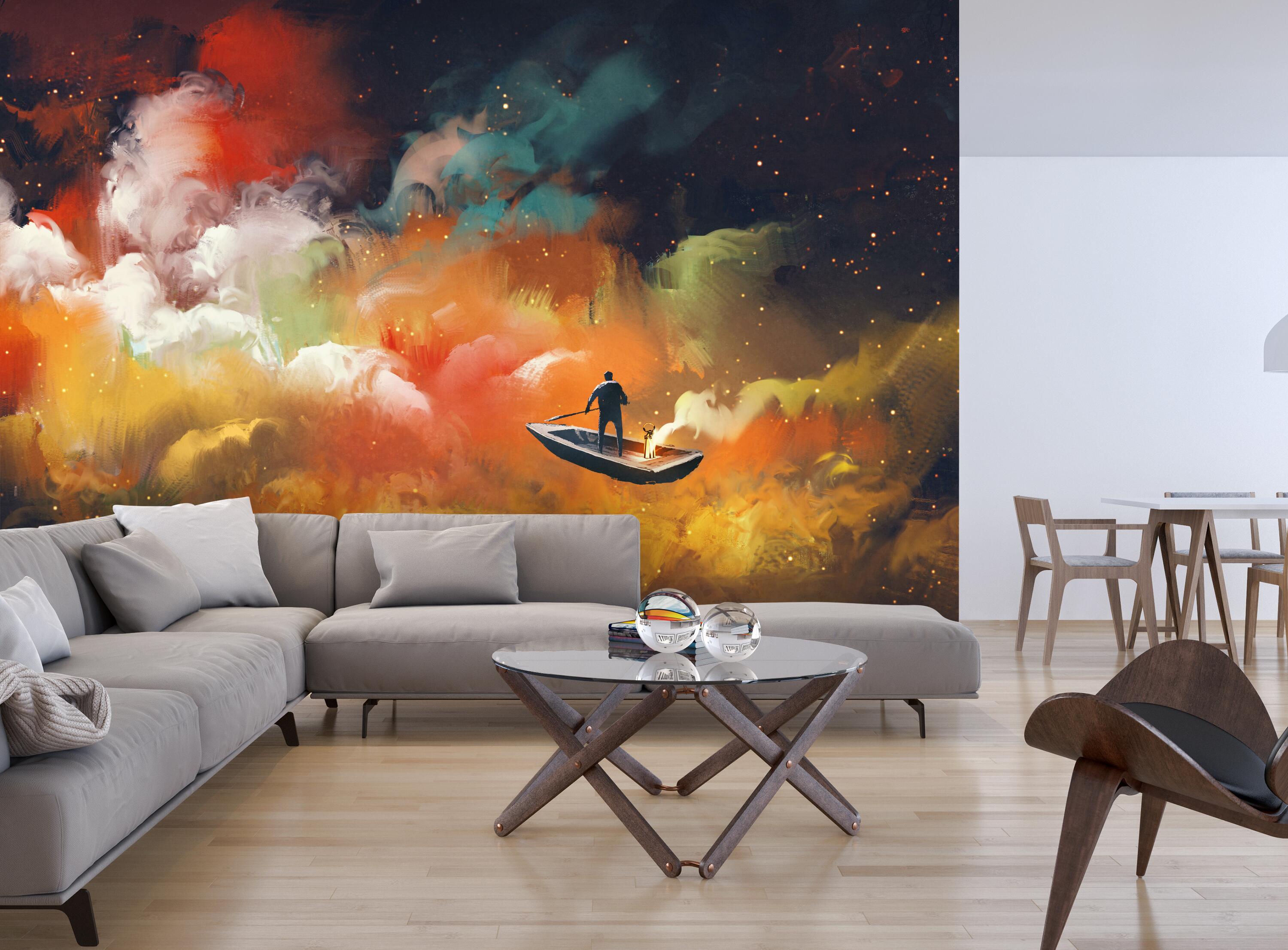 Träumst Du davon, Deine Wände in eine beeindruckende Kunstgalerie zu verwandeln? Mit unserer hochwertigen Fototapete Gemälde mit Wolken Mann im Boot M5987 ist es jetzt möglich! Jede Wand wird zu einer Leinwand Deiner Kreativität.