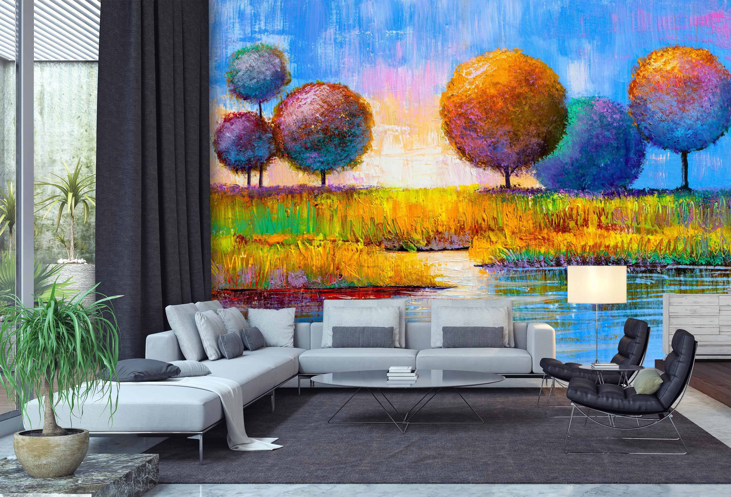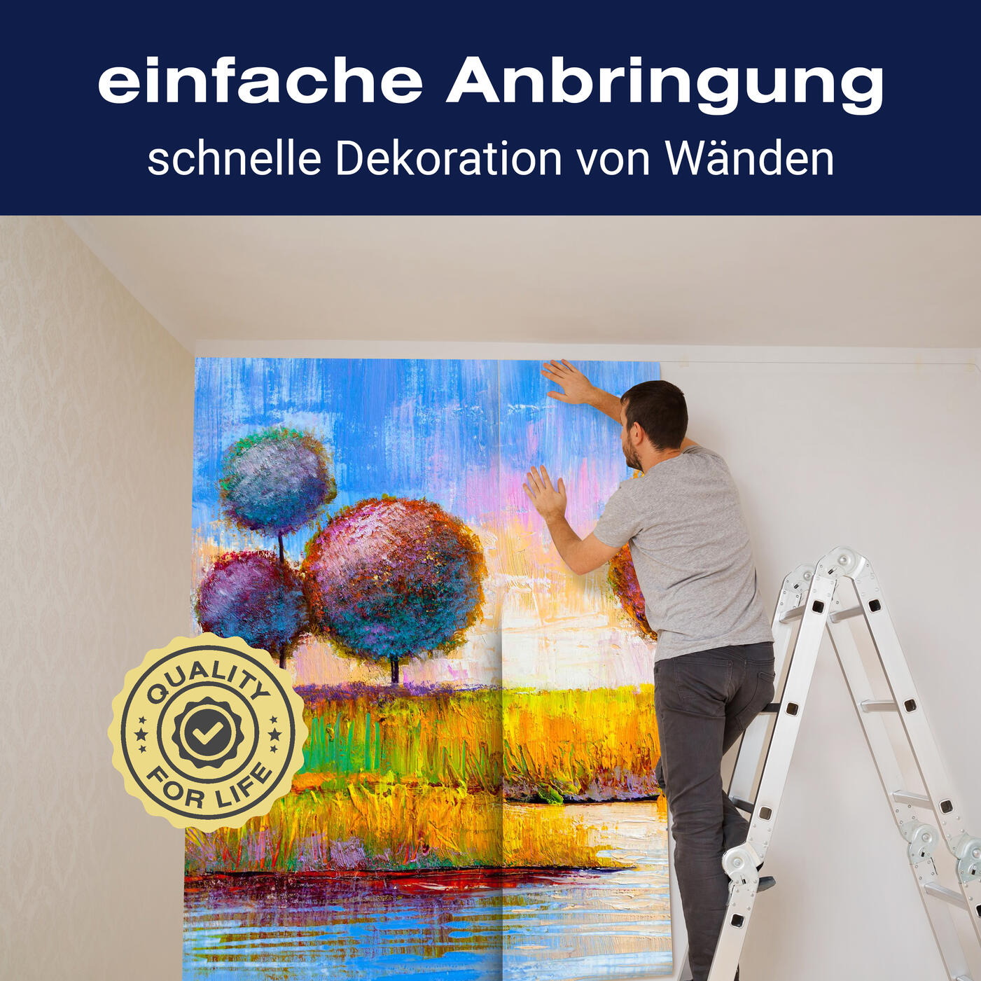 Träumst Du davon, Deine Wände in eine beeindruckende Kunstgalerie zu verwandeln? Mit unserer hochwertigen Fototapete Gemälde Runde Bäume mit See M6007 ist es jetzt möglich! Jede Wand wird zu einer Leinwand Deiner Kreativität.