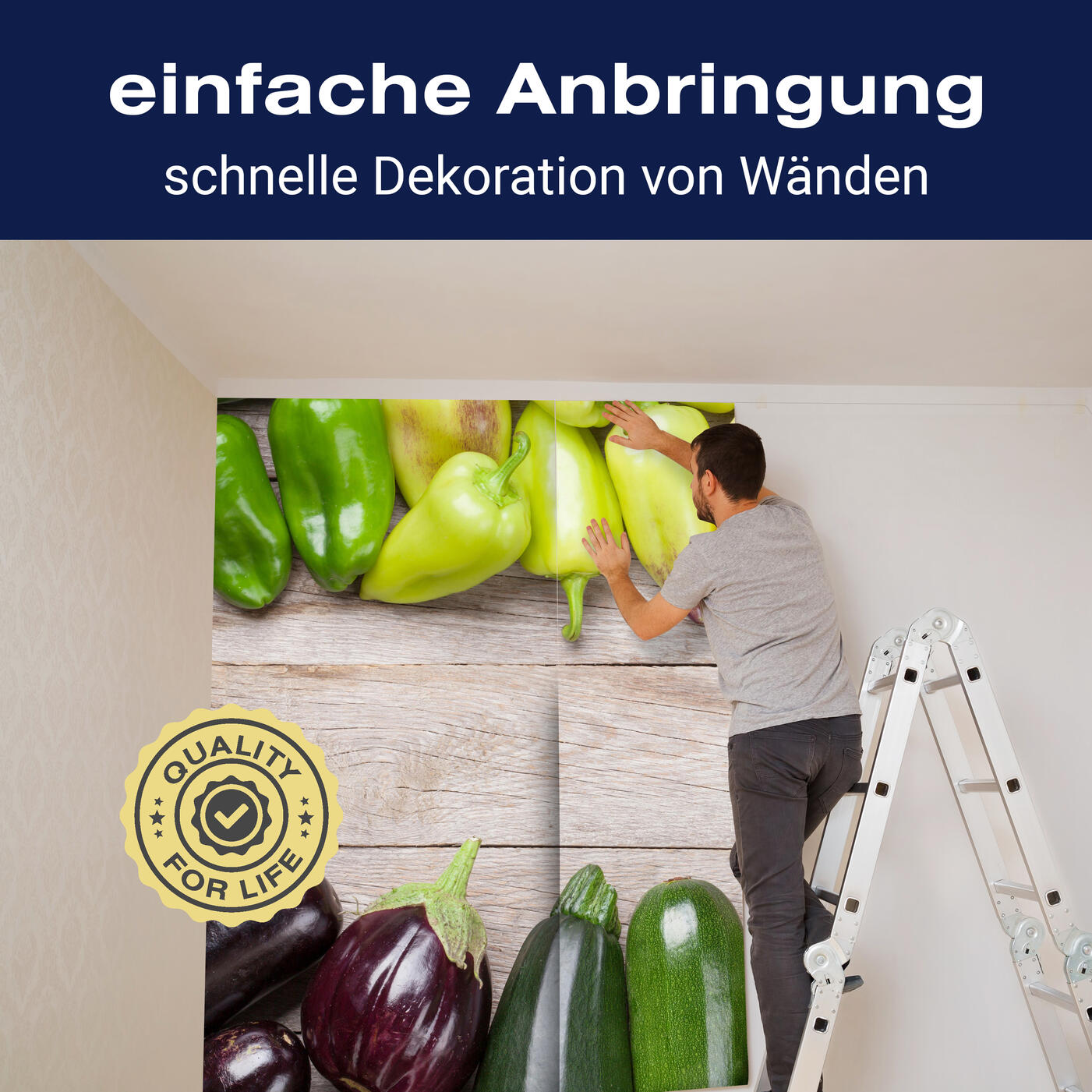 Träumst Du davon, Deine Wände in eine beeindruckende Kunstgalerie zu verwandeln? Mit unserer hochwertigen Fototapete Gemüse Holz Küche 1 M1012 ist es jetzt möglich! Jede Wand wird zu einer Leinwand Deiner Kreativität.
