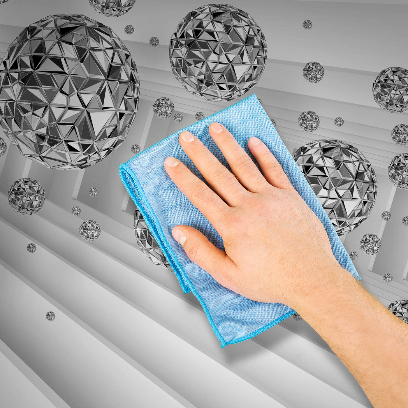 - Reinige eventuelle Verschmutzungen oder Kleberreste sofort mit einem feuchten Schwamm oder Tuch.