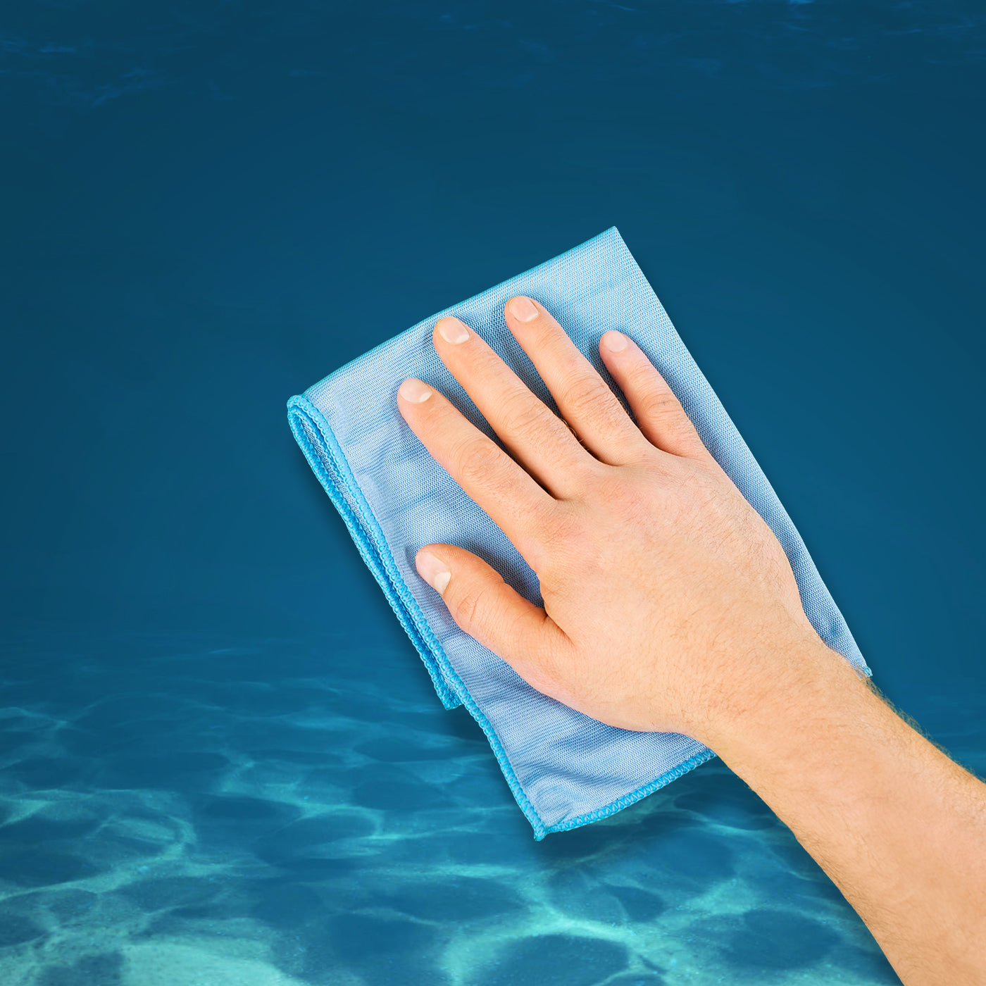 - Reinige eventuelle Verschmutzungen oder Kleberreste sofort mit einem feuchten Schwamm oder Tuch.