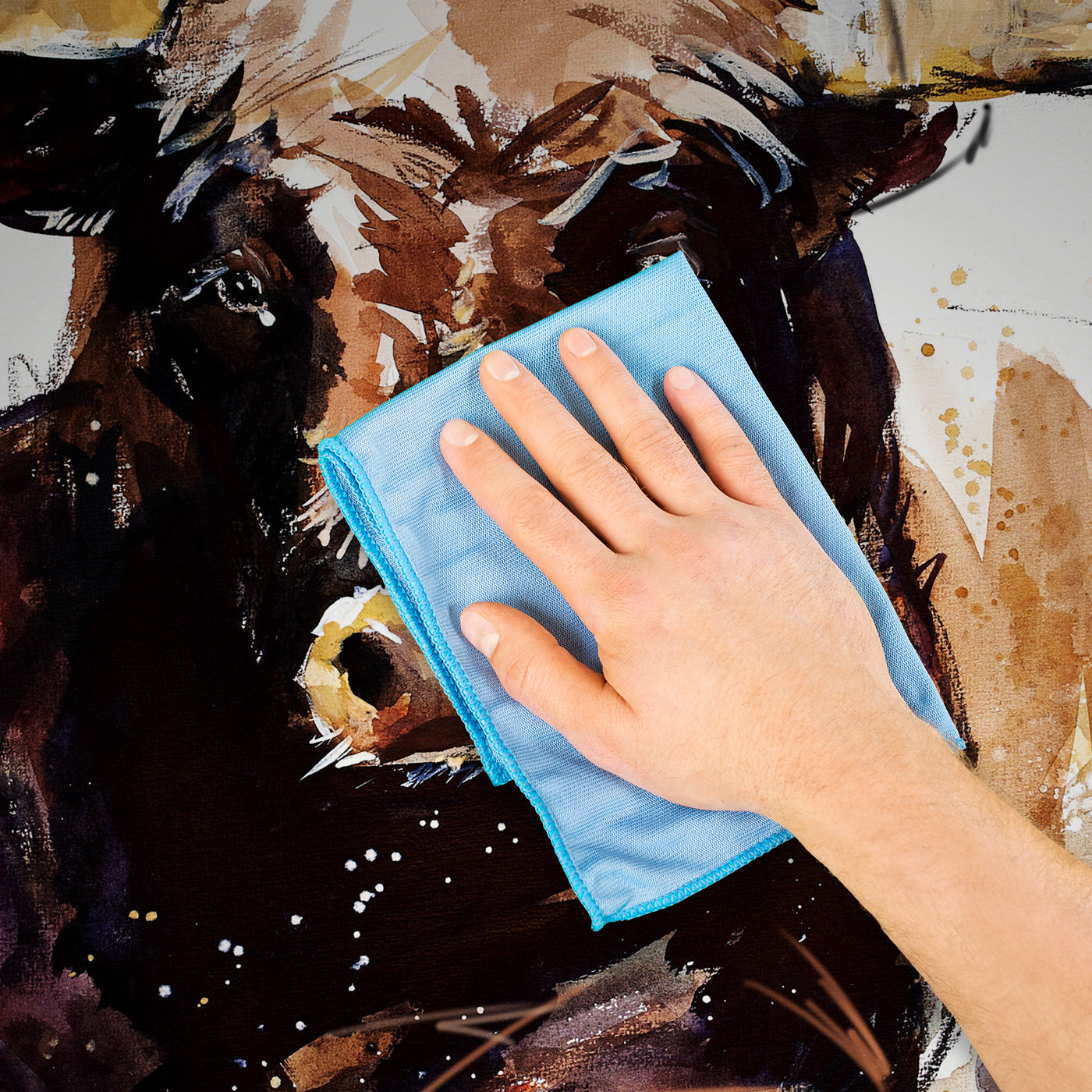 - Reinige eventuelle Verschmutzungen oder Kleberreste sofort mit einem feuchten Schwamm oder Tuch.