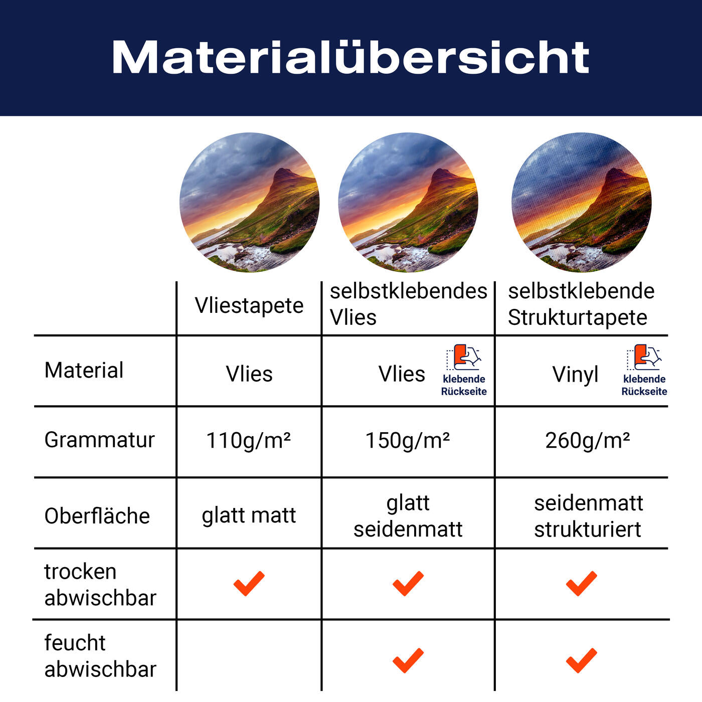- Selbstklebendes Vlies 150g/m²: Einfach anzubringen, perfekt für Mietwohnungen.