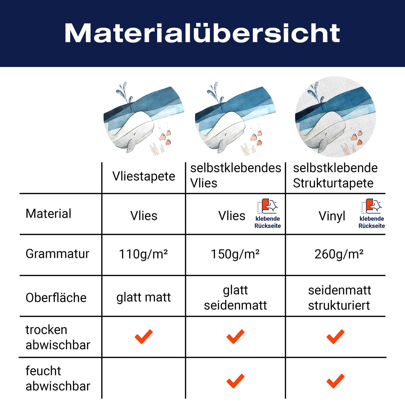 - Selbstklebendes Vlies 150g/m²: Einfach anzubringen, perfekt für Mietwohnungen.