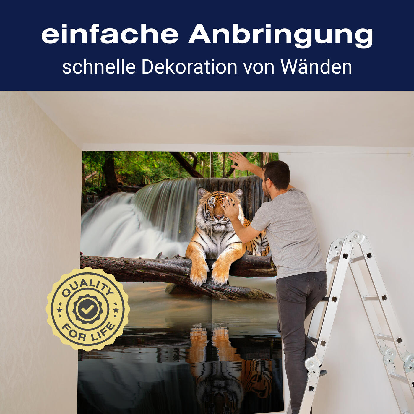 Träumst Du davon, Deine Wände in eine beeindruckende Kunstgalerie zu verwandeln? Mit unserer hochwertigen Fototapete liegender Tiger Wasserfall M6544 ist es jetzt möglich! Jede Wand wird zu einer Leinwand Deiner Kreativität.