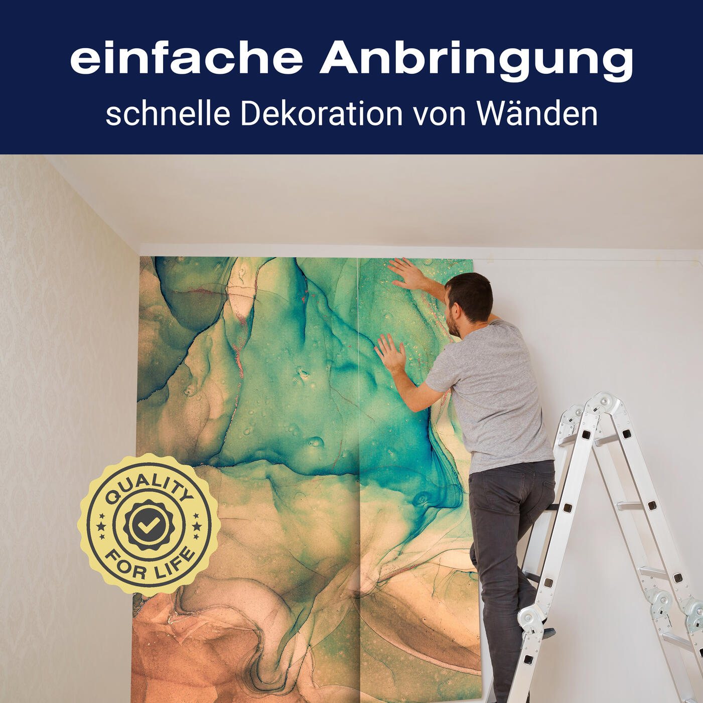 Träumst Du davon, Deine Wände in eine beeindruckende Kunstgalerie zu verwandeln? Mit unserer hochwertigen Fototapete Marmor braun türkis gold M6663 ist es jetzt möglich! Jede Wand wird zu einer Leinwand Deiner Kreativität.