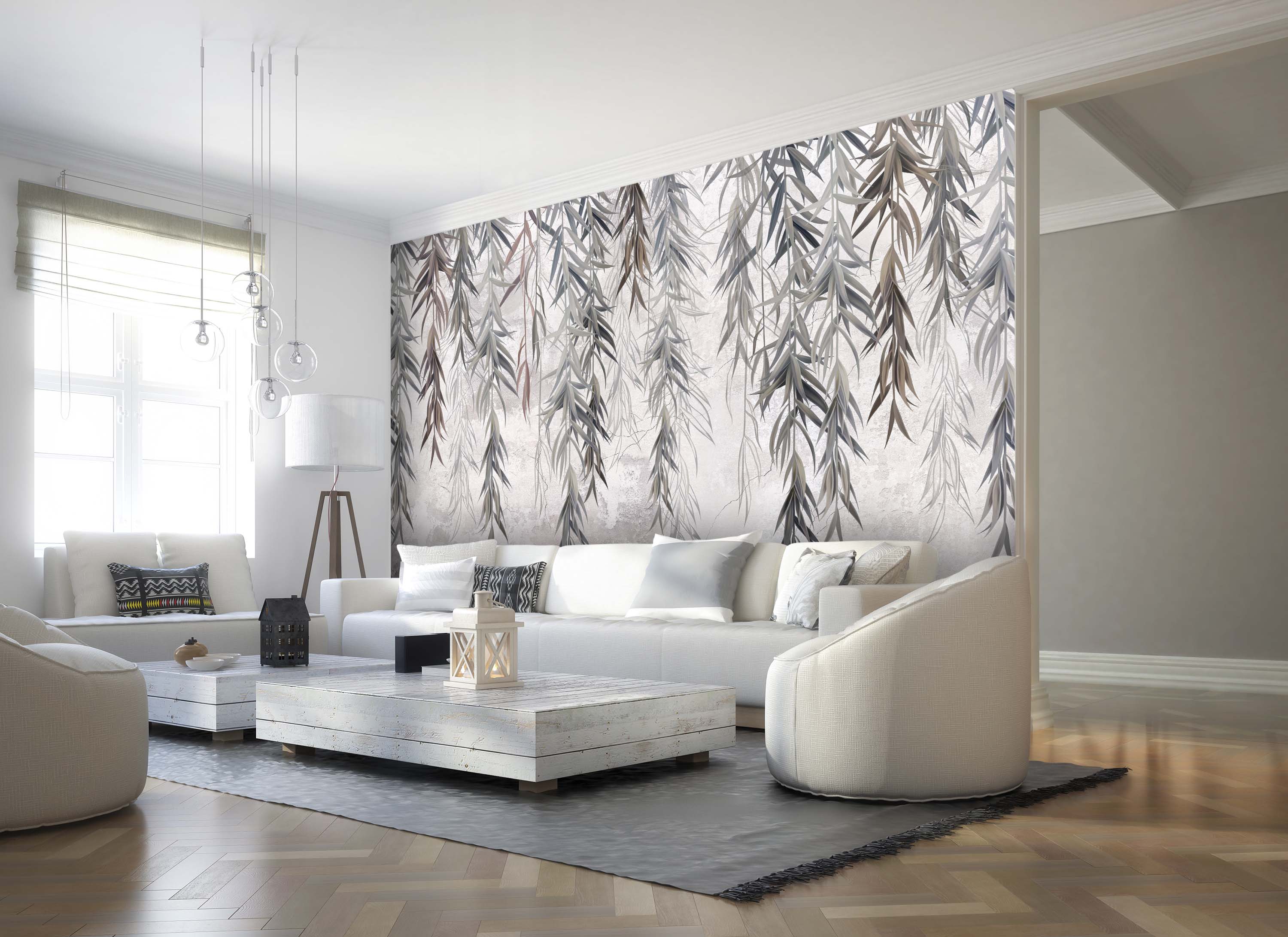 FOTOTAPETE mediterran Zweige Blätter Wand Beton