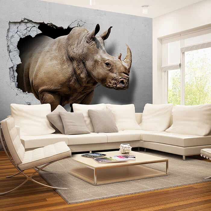 FOTOTAPETE Nashorn 3D Optik Wanddruchbruch
