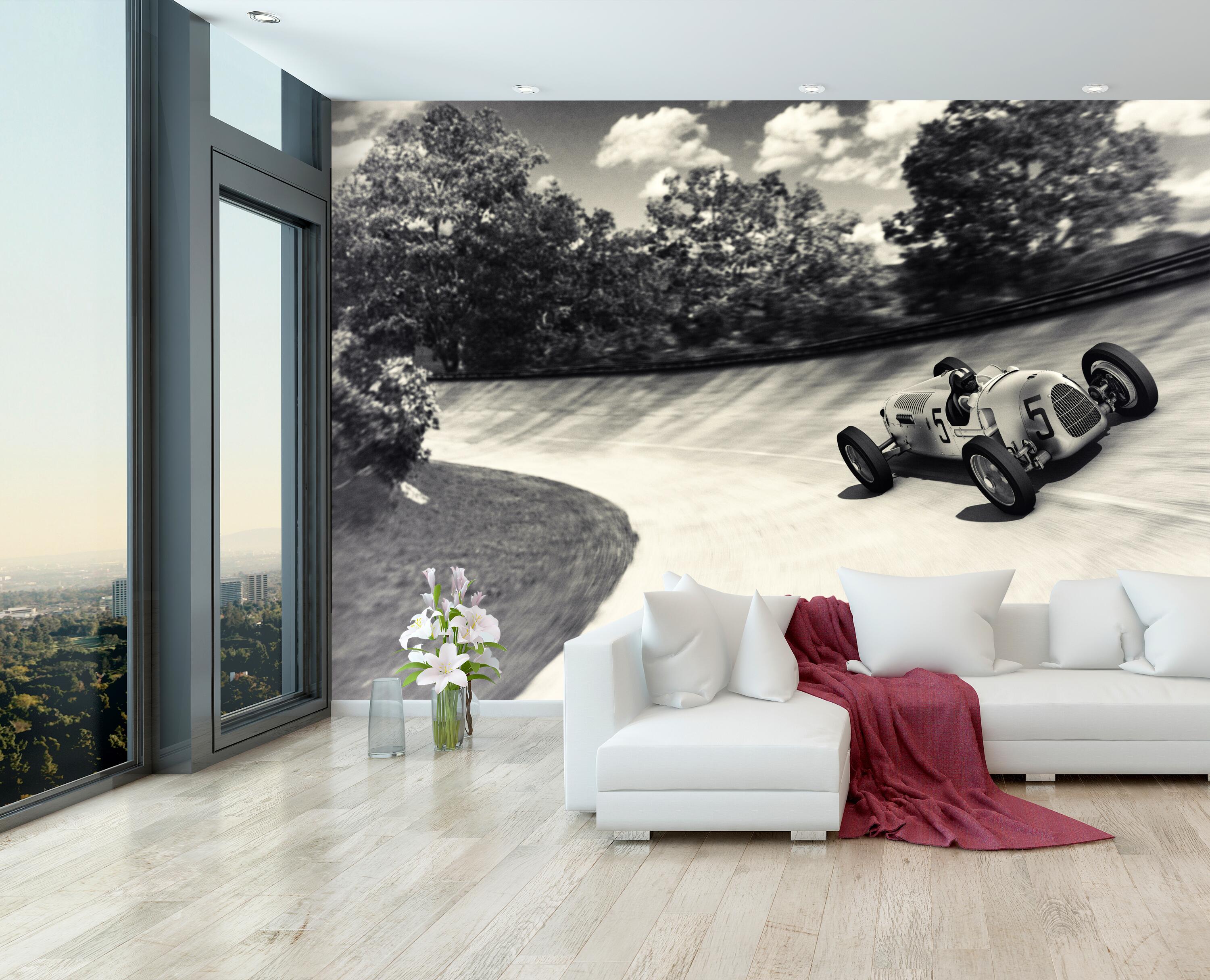Träumst Du davon, Deine Wände in eine beeindruckende Kunstgalerie zu verwandeln? Mit unserer hochwertigen Fototapete Oldtimer Rennwagen auf Straße M5884 ist es jetzt möglich! Jede Wand wird zu einer Leinwand Deiner Kreativität.