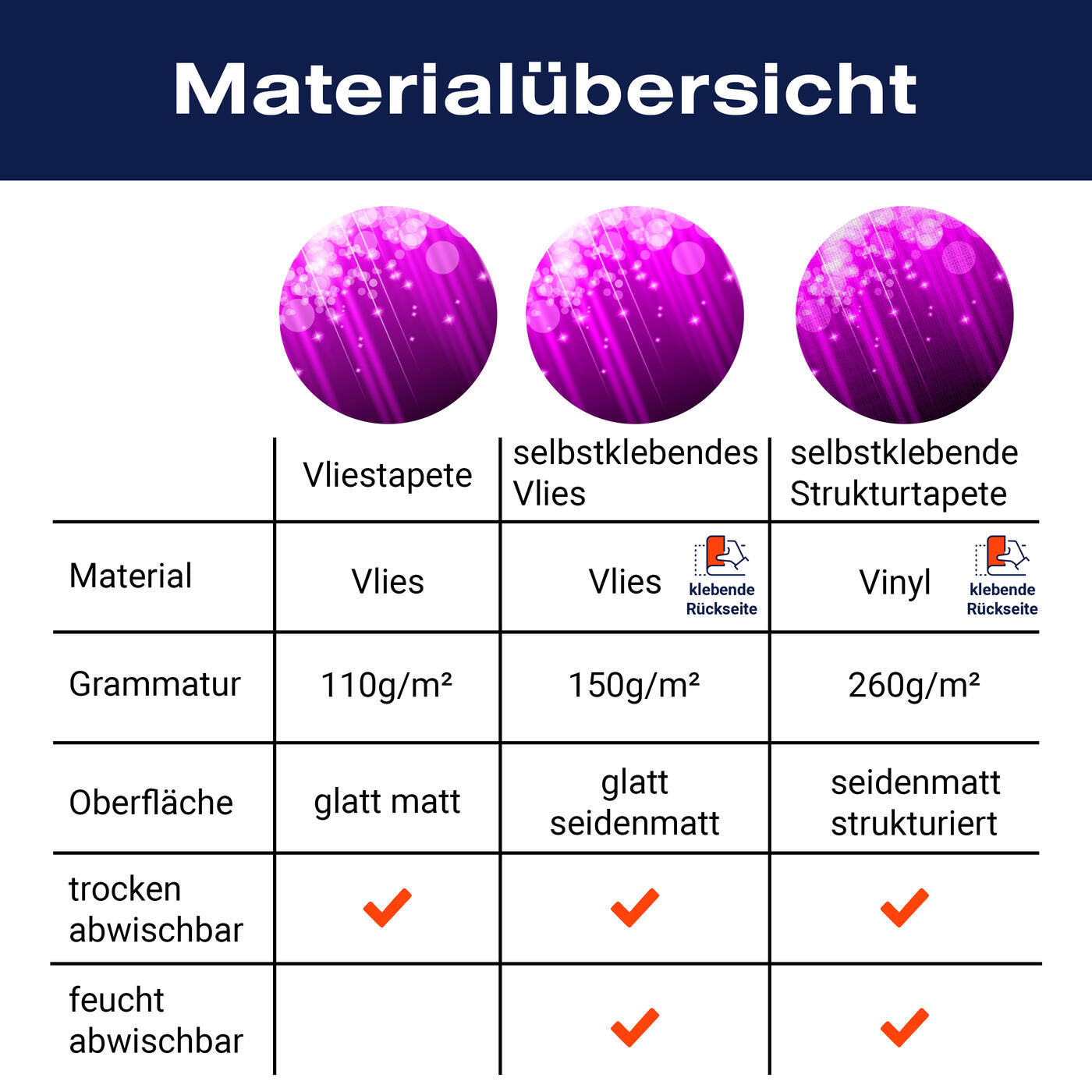- Selbstklebendes Vlies 150g/m²: Einfach anzubringen, perfekt für Mietwohnungen.