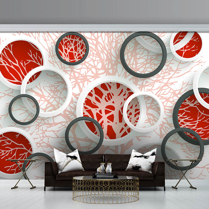 Fototapete Rot äste 3D Abstrakt Fenster Kreise M4591