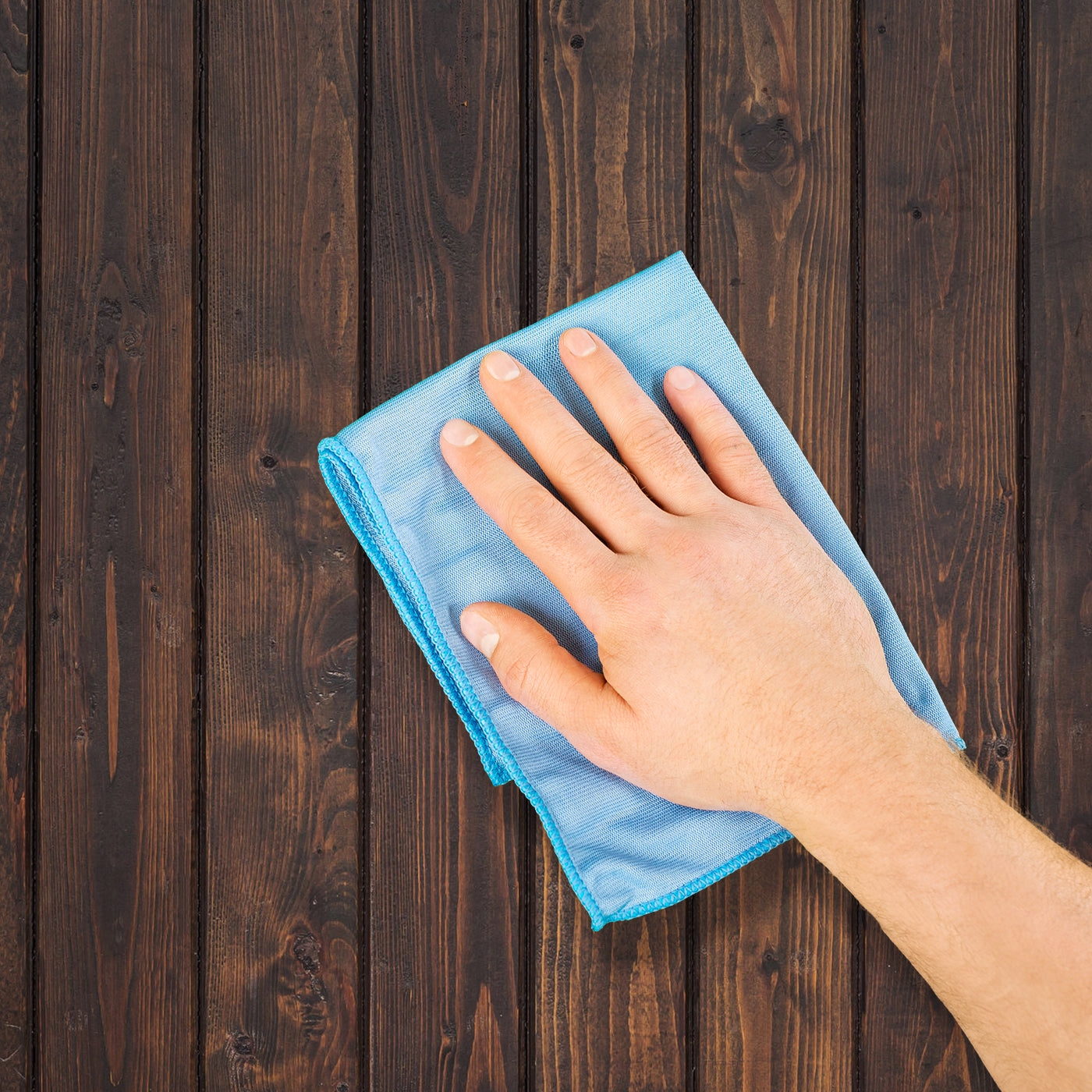 - Reinige eventuelle Verschmutzungen oder Kleberreste sofort mit einem feuchten Schwamm oder Tuch.