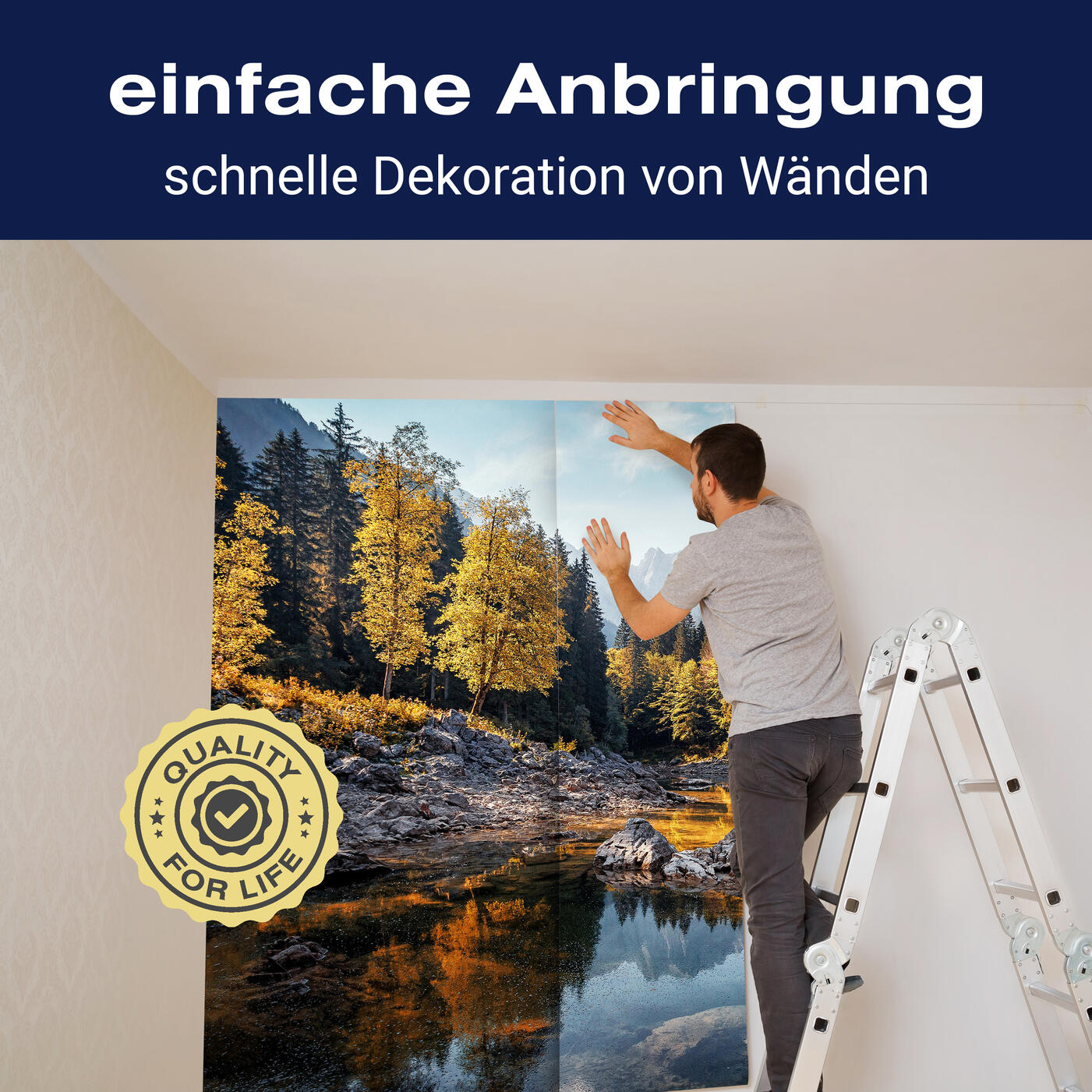Träumst Du davon, Deine Wände in eine beeindruckende Kunstgalerie zu verwandeln? Mit unserer hochwertigen Fototapete See Wald Berge M6754 ist es jetzt möglich! Jede Wand wird zu einer Leinwand Deiner Kreativität.