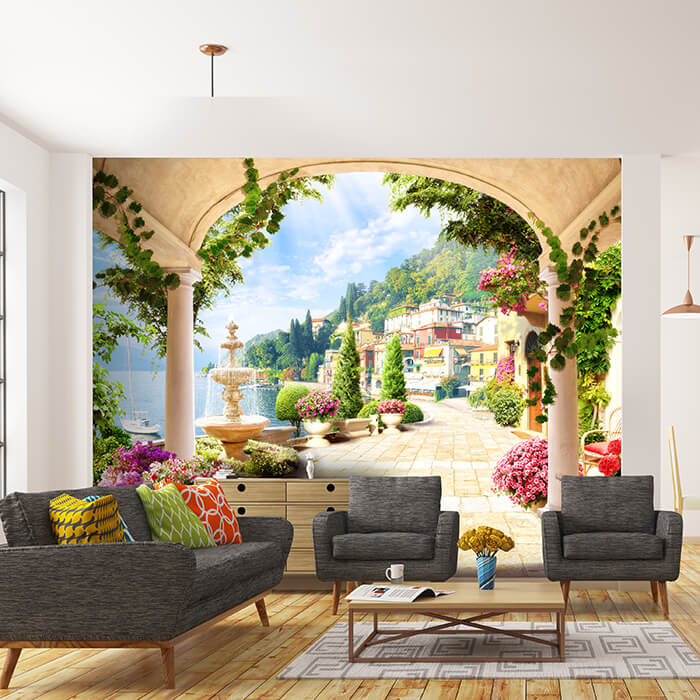 Träumst Du davon, Deine Wände in eine beeindruckende Kunstgalerie zu verwandeln? Mit unserer hochwertigen Fototapete Seeblick Sandstein Terrasse M1080 ist es jetzt möglich! Jede Wand wird zu einer Leinwand Deiner Kreativität.