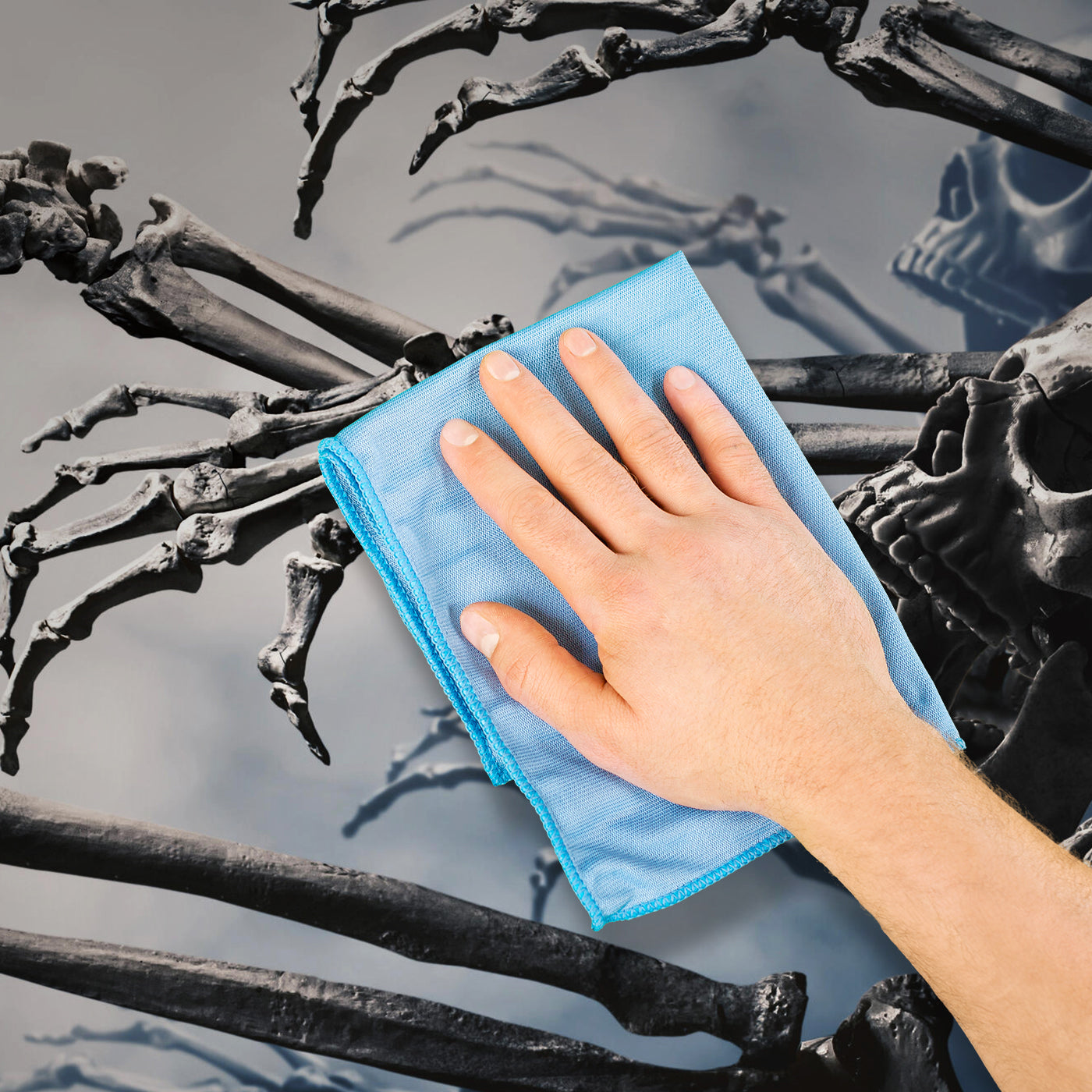 - Reinige eventuelle Kleberreste sofort mit einem feuchten Schwamm oder Tuch.