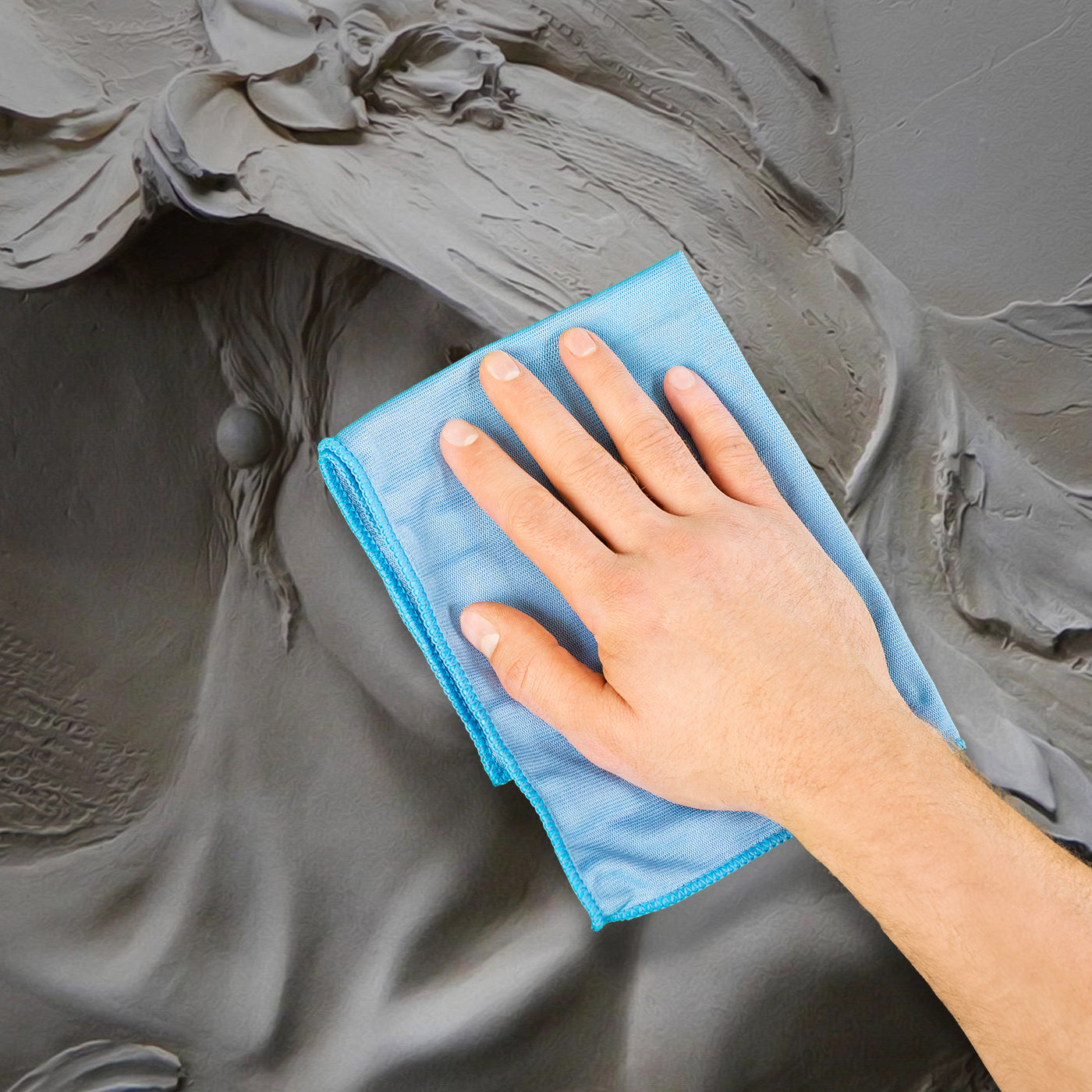 - Reinige eventuelle Verschmutzungen oder Kleberreste sofort mit einem feuchten Schwamm oder Tuch.