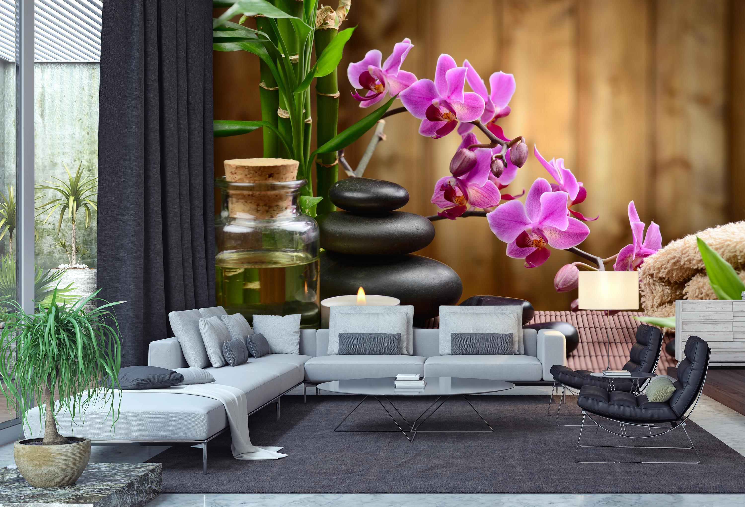 FOTOTAPETE Spa Steine Öl Bambus Rosa Orchideen