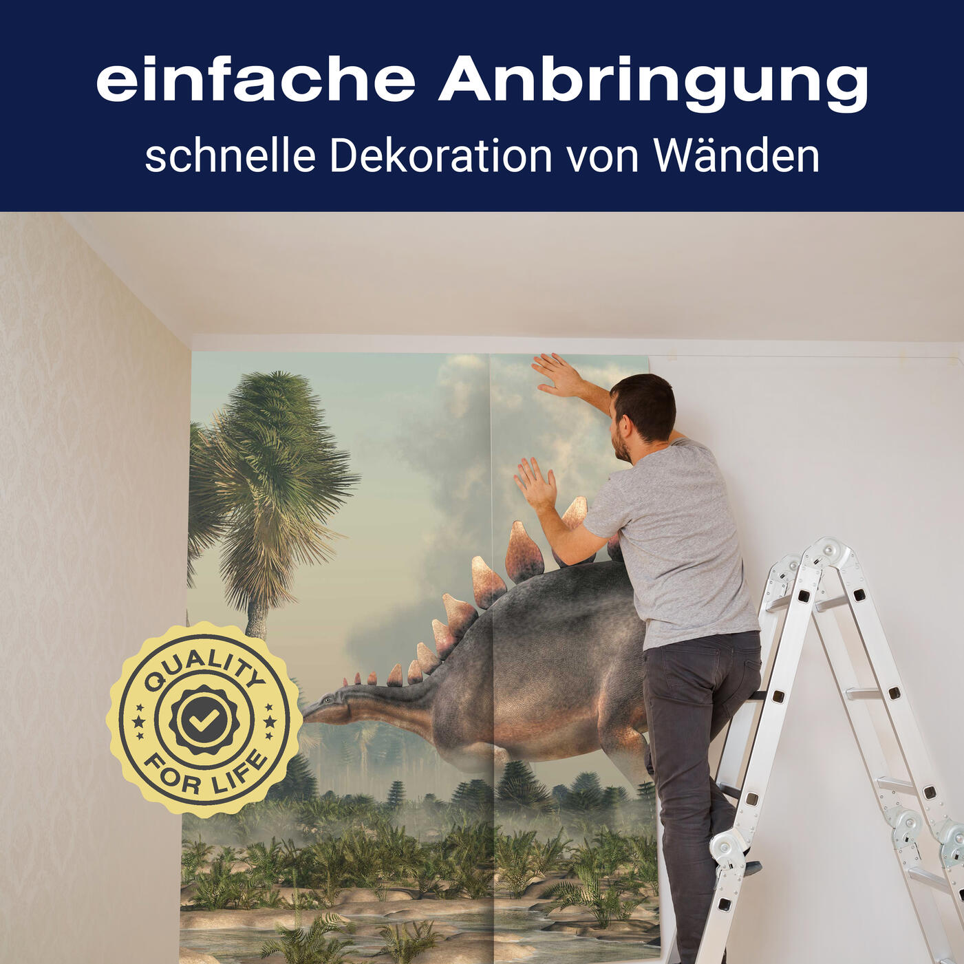 Träumst Du davon, Deine Wände in eine beeindruckende Kunstgalerie zu verwandeln? Mit unserer hochwertigen Fototapete Stegosaurus Dino zwischen Palmen M6018 ist es jetzt möglich! Jede Wand wird zu einer Leinwand Deiner Kreativität.