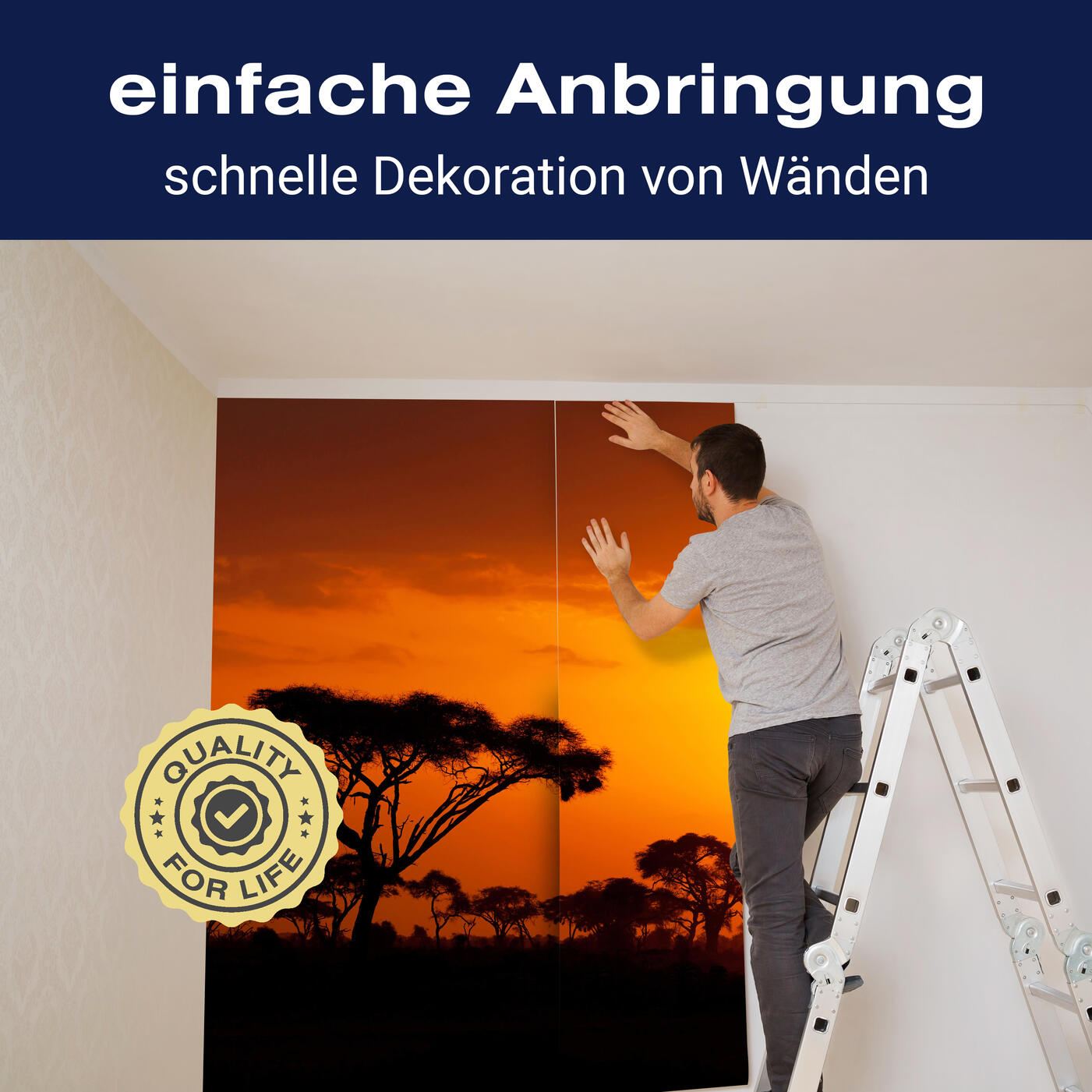 Träumst Du davon, Deine Wände in eine beeindruckende Kunstgalerie zu verwandeln? Mit unserer hochwertigen Fototapete Steppe Sonnenuntergang M0367 ist es jetzt möglich! Jede Wand wird zu einer Leinwand Deiner Kreativität.