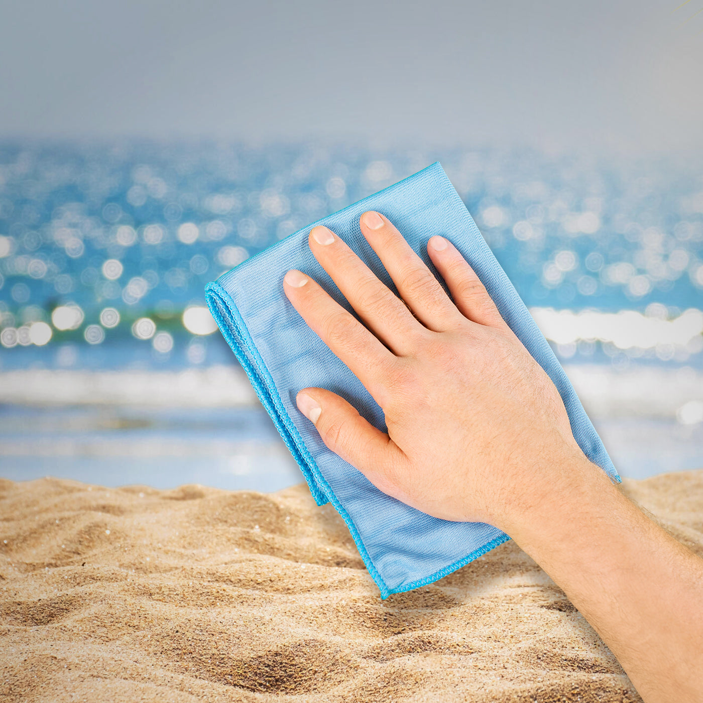 - Reinige eventuelle Verschmutzungen oder Kleberreste sofort mit einem feuchten Schwamm oder Tuch.