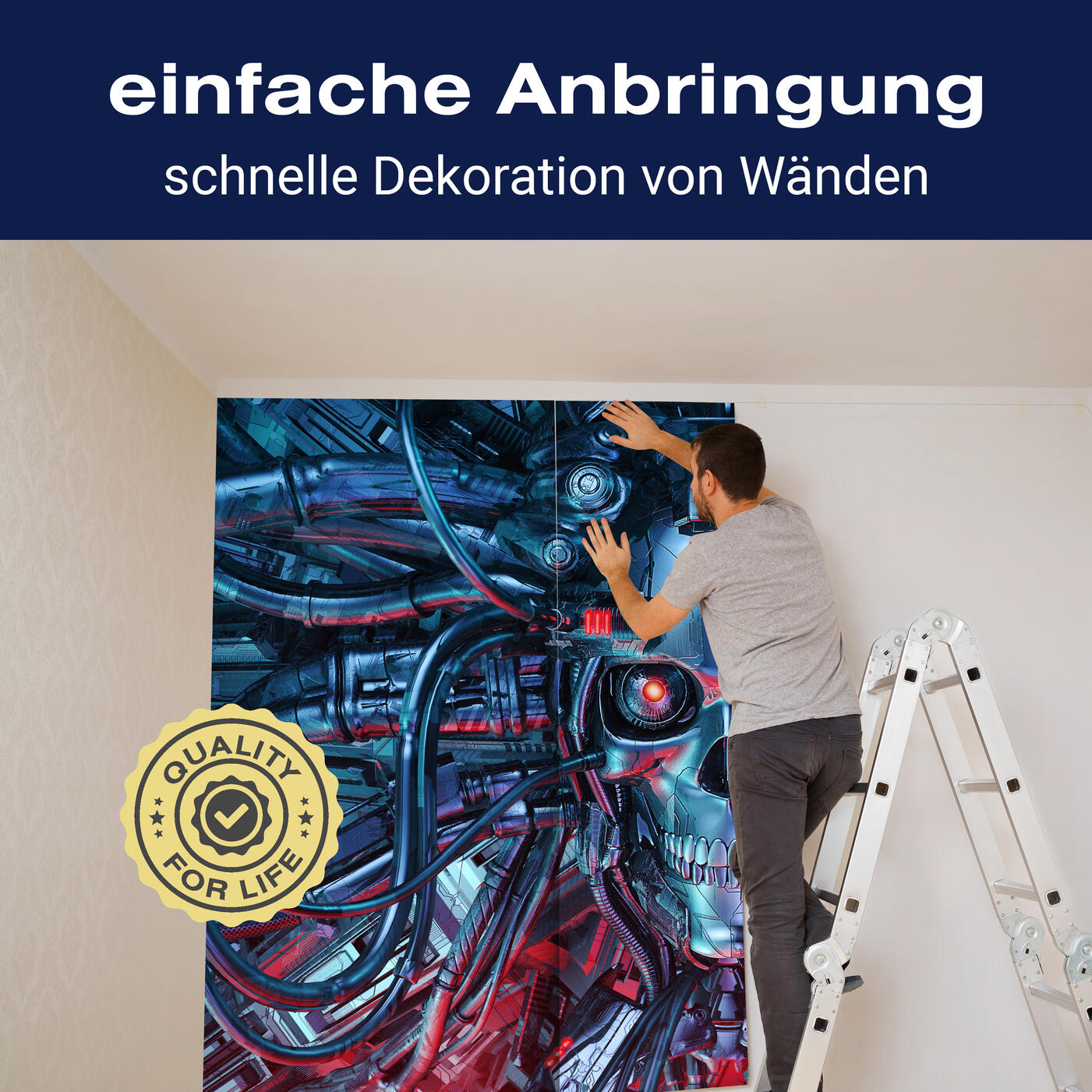 - Wenn deine Fototapete aus mehreren Bahnen besteht, achte darauf, dass die Motive oder das Design sauber und nahtlos ineinander übergehen. Achte dabei auf die Anweisungen des Herstellers oder auf eventuelle Markierungen auf der Tapete selbst.