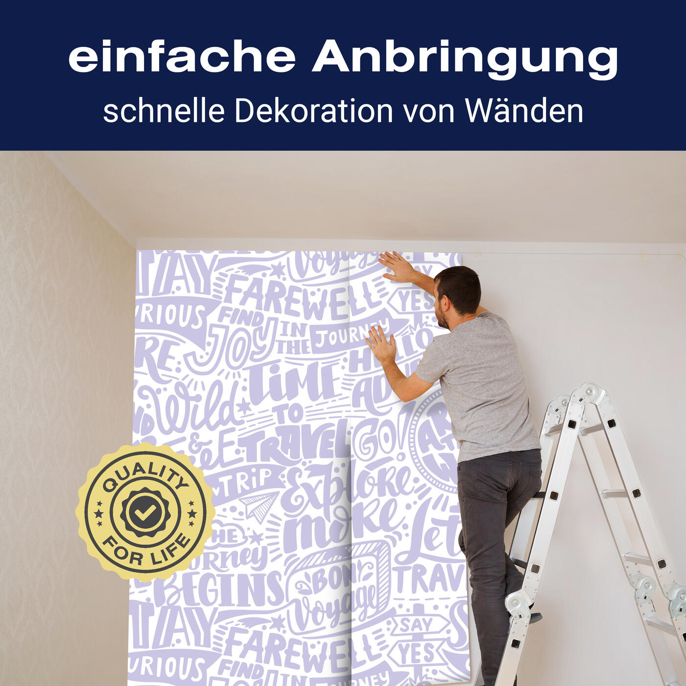 - Wenn deine Fototapete aus mehreren Bahnen besteht, achte darauf, dass die Motive oder das Design sauber und nahtlos ineinander übergehen. Achte dabei auf die Anweisungen des Herstellers oder auf eventuelle Markierungen auf der Tapete selbst.