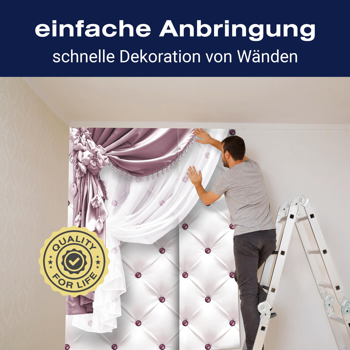 Unsere Fototapeten sind so konzipiert, dass sie ohne großen Aufwand angebracht werden können. Ob selbstklebend oder traditionell, die Anbringung ist einfach und schnell.