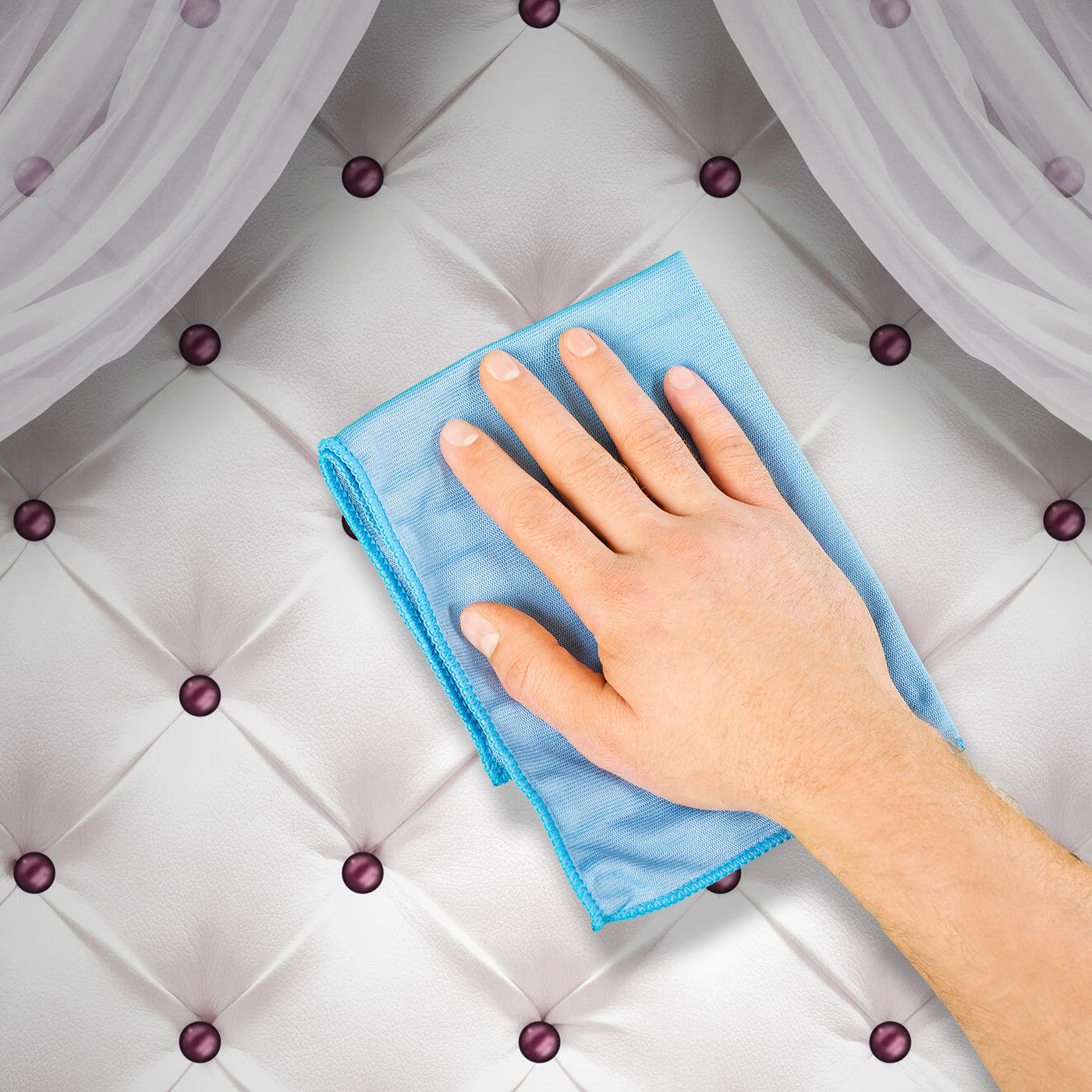 - Reinige eventuelle Verschmutzungen oder Kleberreste sofort mit einem feuchten Schwamm oder Tuch.