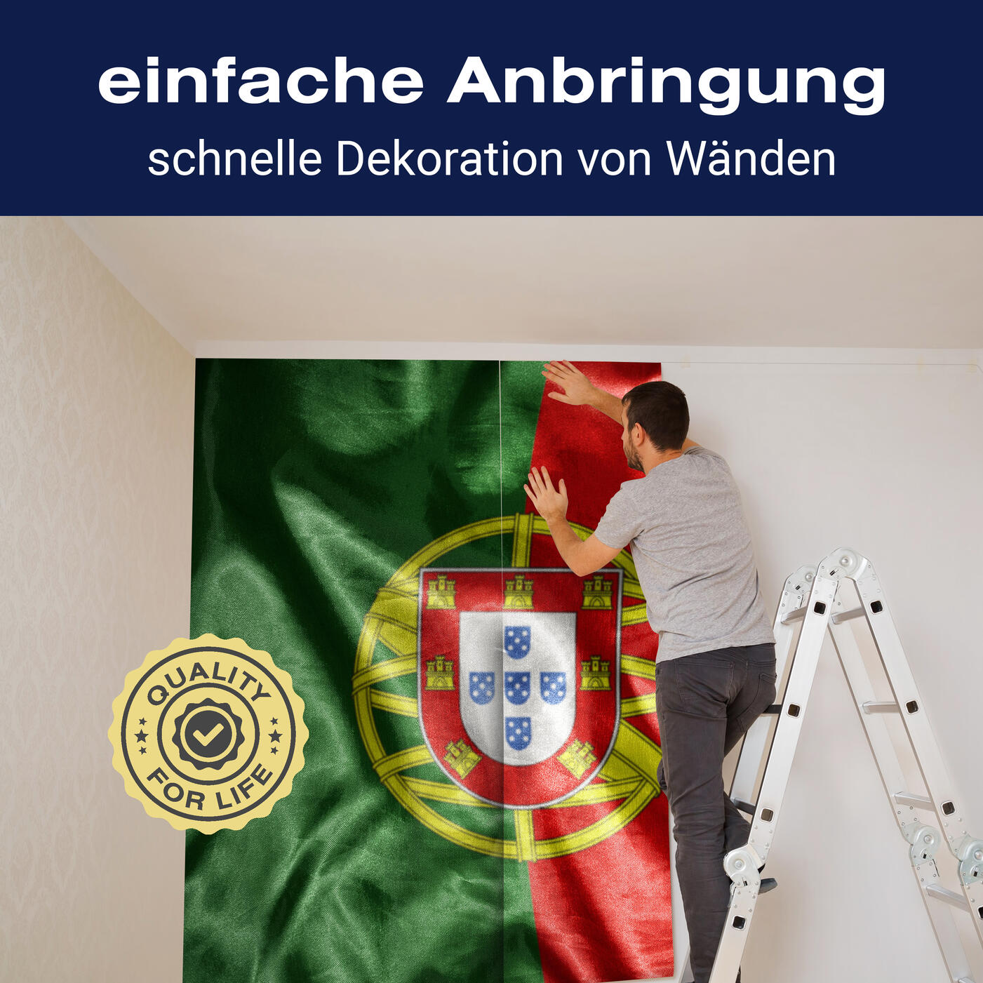 Träumst Du davon, Deine Wände in eine beeindruckende Kunstgalerie zu verwandeln? Mit unserer hochwertigen Fototapete Wehende Portugiesische Flagge M4921 ist es jetzt möglich! Jede Wand wird zu einer Leinwand Deiner Kreativität.