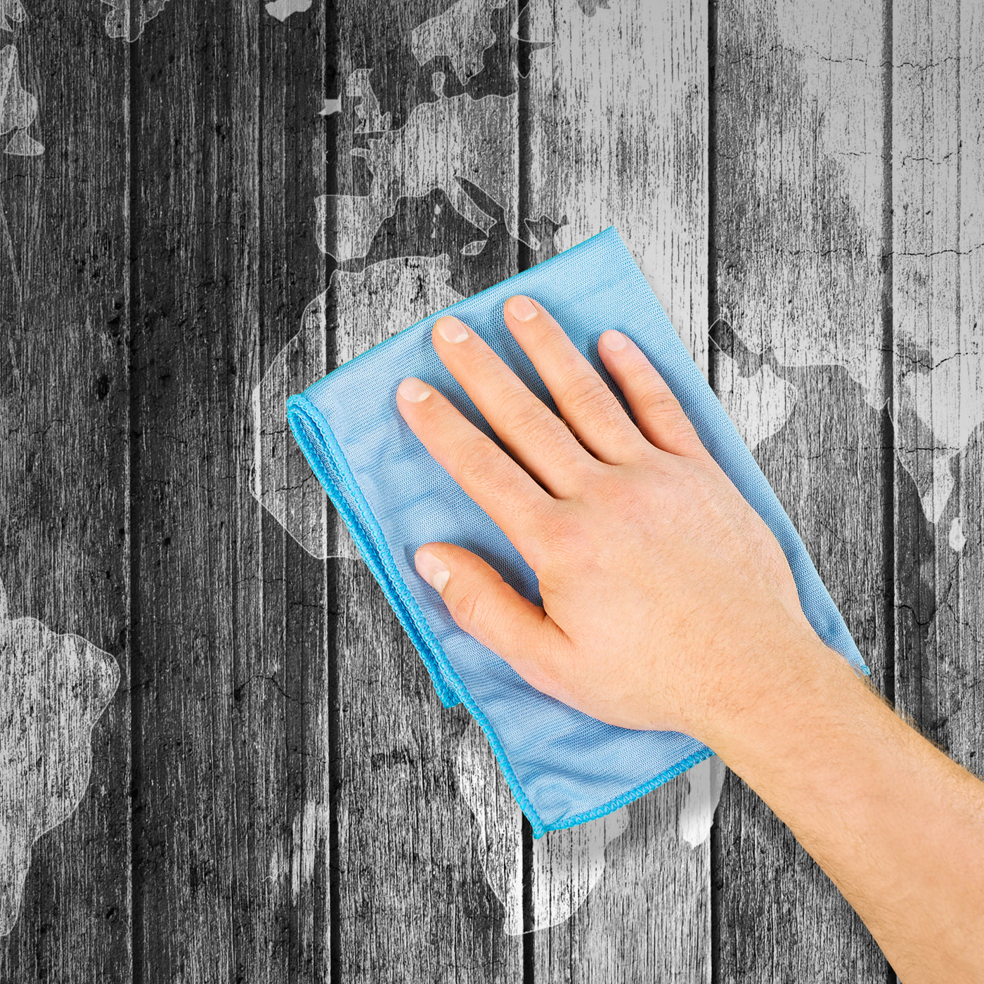 - Reinige eventuelle Verschmutzungen oder Kleberreste sofort mit einem feuchten Schwamm oder Tuch.