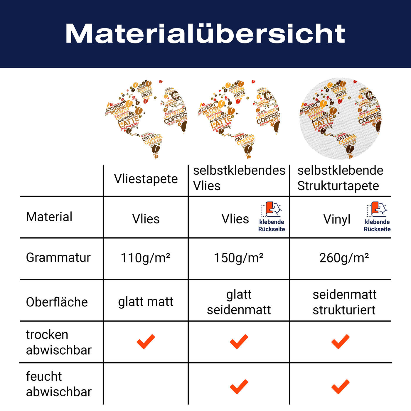 - Selbstklebendes Vlies 150g/m²: Einfach anzubringen, perfekt für Mietwohnungen.