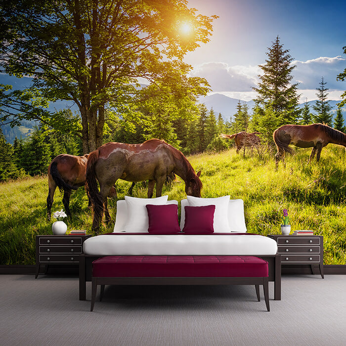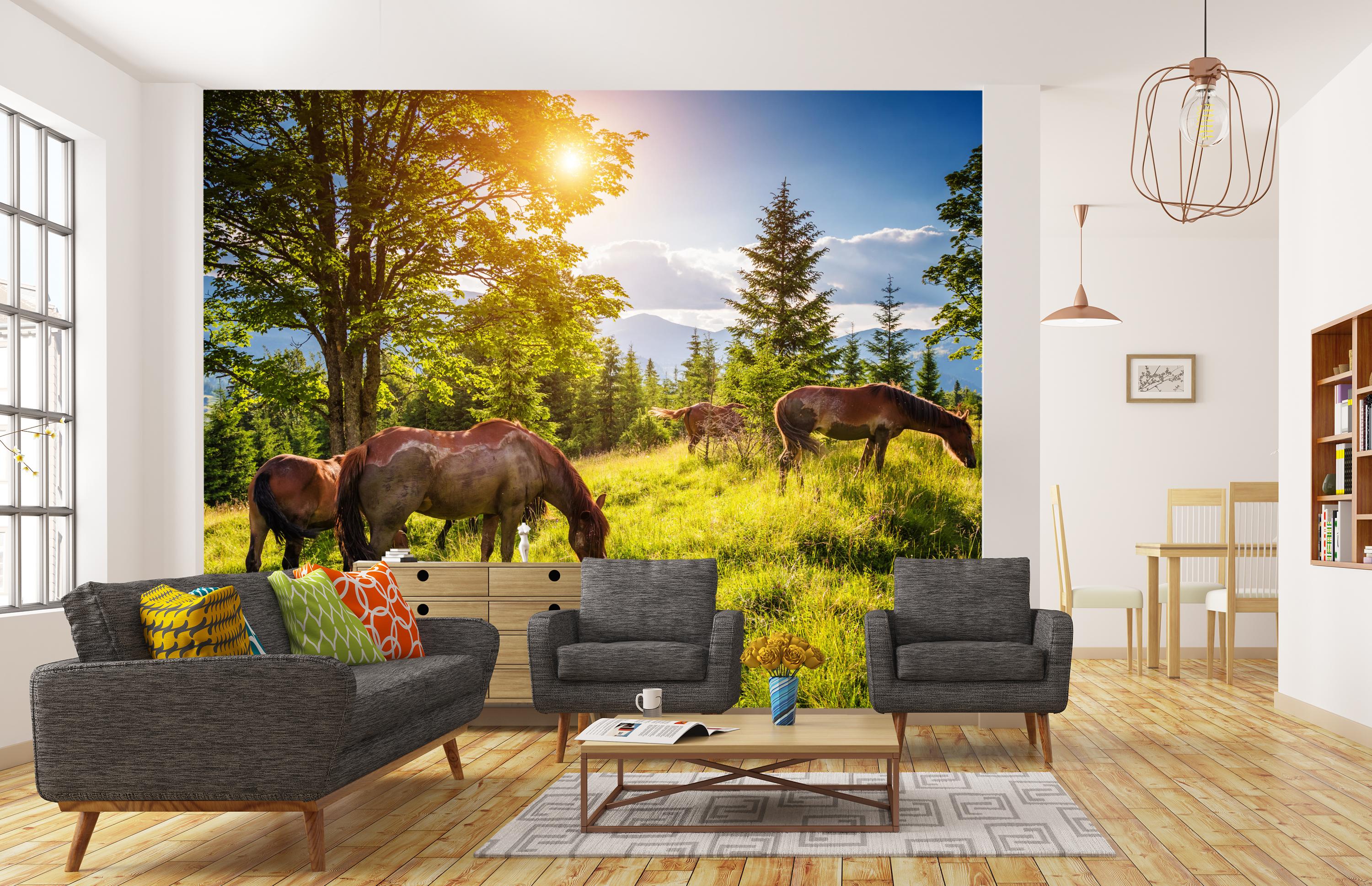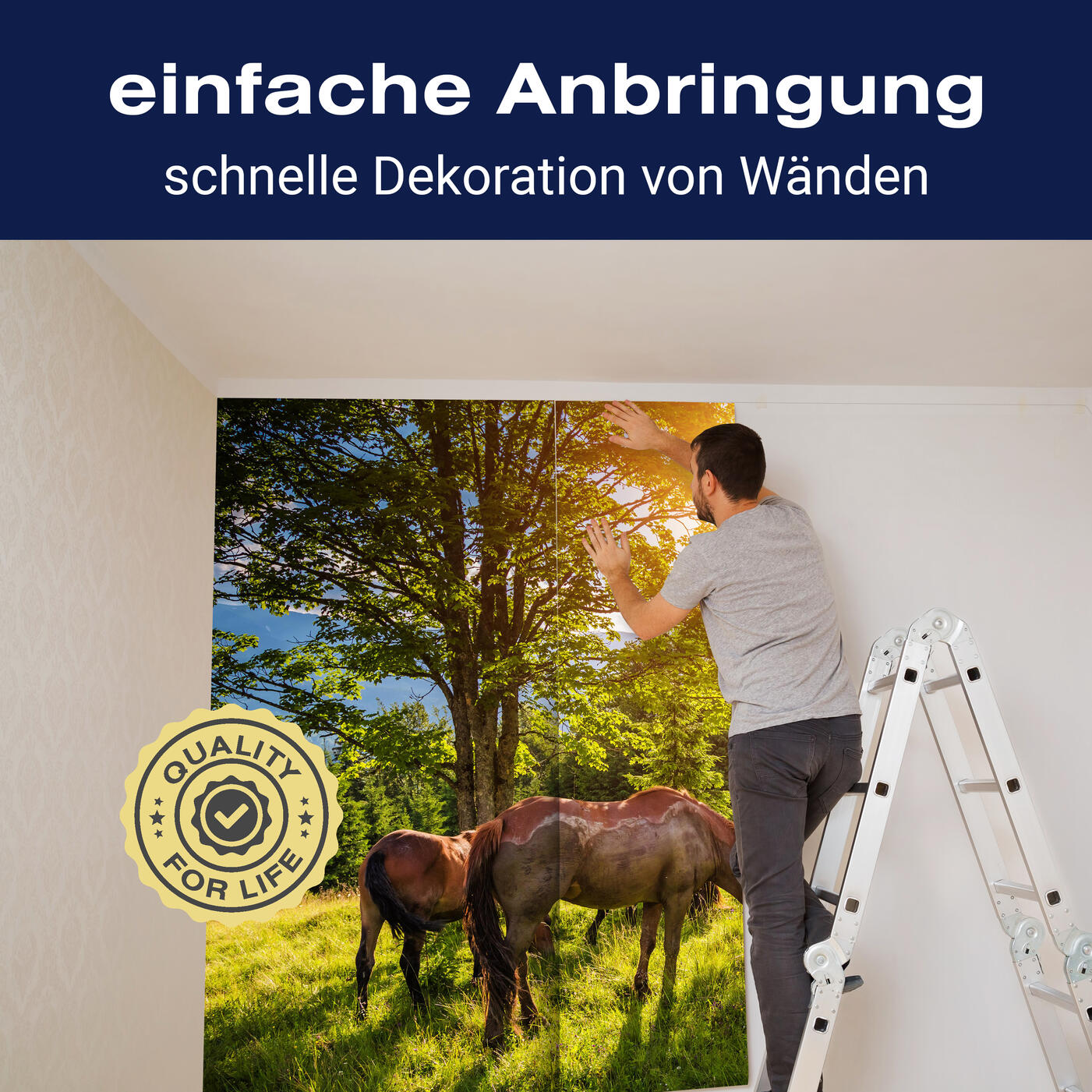 Träumst Du davon, Deine Wände in eine beeindruckende Kunstgalerie zu verwandeln? Mit unserer hochwertigen Fototapete Wiese mit Pferden M5727 ist es jetzt möglich! Jede Wand wird zu einer Leinwand Deiner Kreativität.