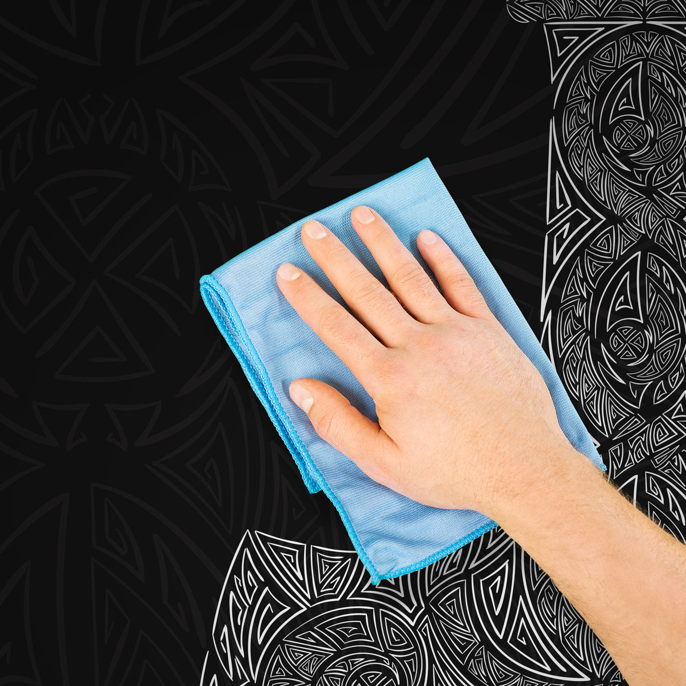 - Reinige eventuelle Verschmutzungen oder Kleberreste sofort mit einem feuchten Schwamm oder Tuch.
